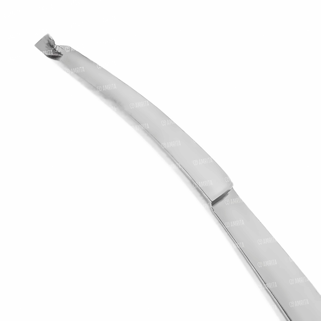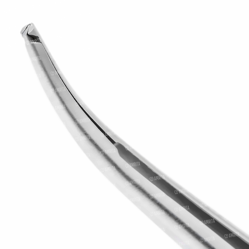 - Изогнутая форма позволяет эффективно работать в анатомически сложных зонах полости рта, обеспечивая оптимальный угол подхода и хороший обзор операционного поля;