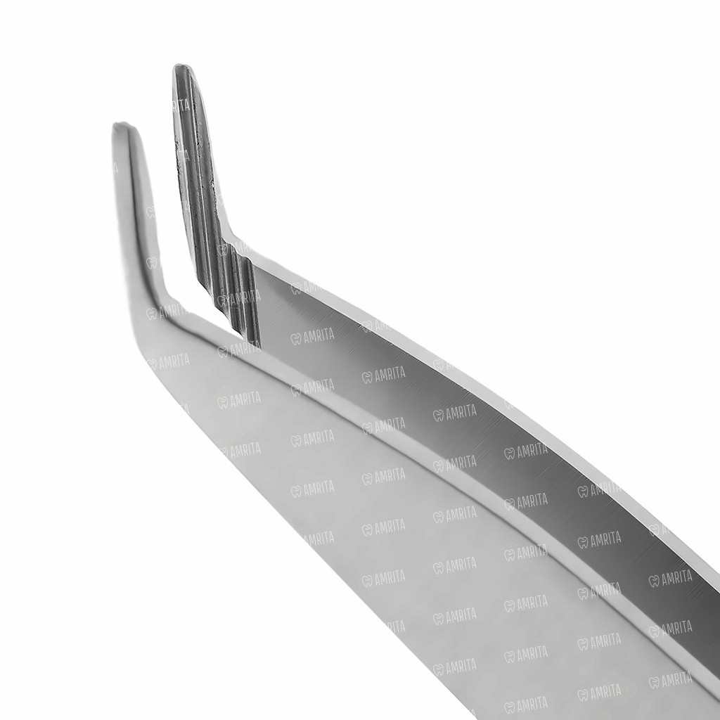 - Рифленая рабочая часть с поперечными насечками обеспечивает надежный захват брекетов без скольжения, минимизируя риск их повреждения или смещения;