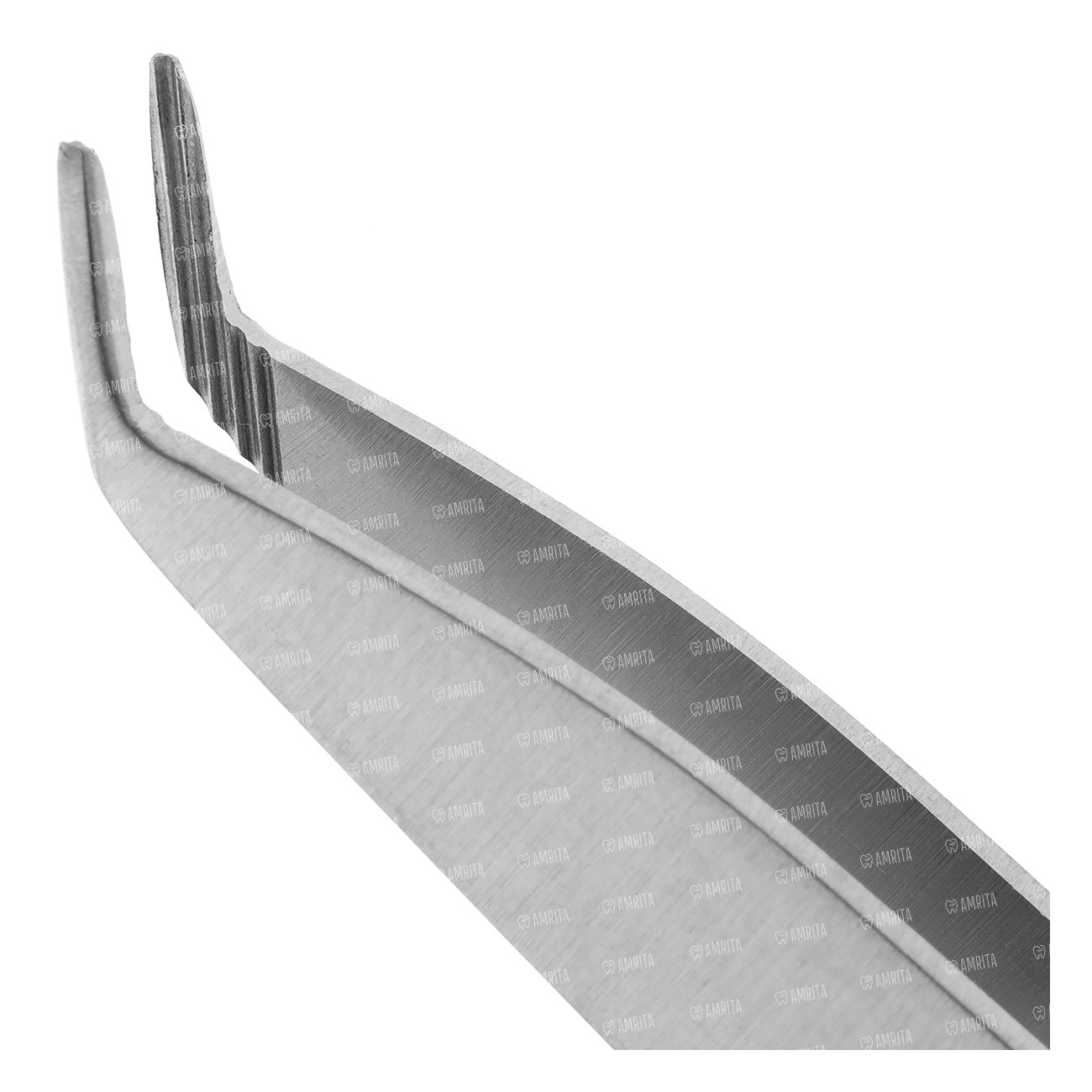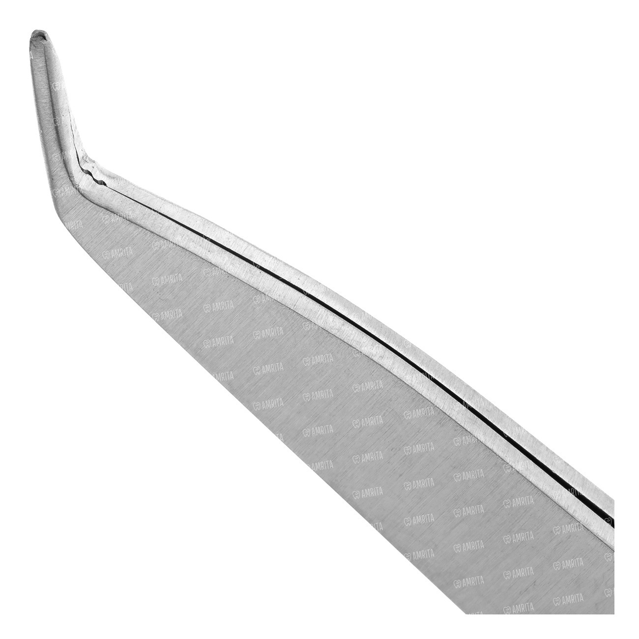 Тыльная сторона пинцета используется для удаления излишков адгезивного и иного материала из области проведения манипуляции Рабочая часть шириной не более 1,5 мм имеет уплощение, обеспечивающее фиксацию удерживаемых инструментов. Размыкание рабочих частей происходит путем надавливания на центральную часть рукоятки пинцета. Общая длина не более 14 см.