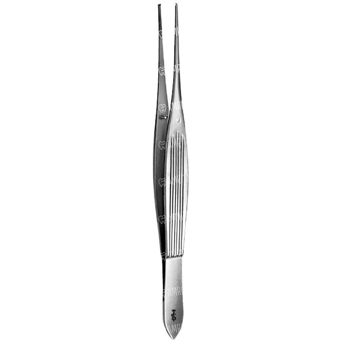 Вид инструмента и конструкция: данный пинцет относится к категории хирургических инструментов, предназначенных для деликатного обращения с тканями. Его прямая форма обеспечивает удобный и прямой доступ к операционному полю, позволяя хирургу выполнять манипуляции с высокой точностью. Принадлежность к серии Mc Indoe подчеркивает его специализированное назначение для работы с нежными тканями, обеспечивая бережное, но прочное удержание.
