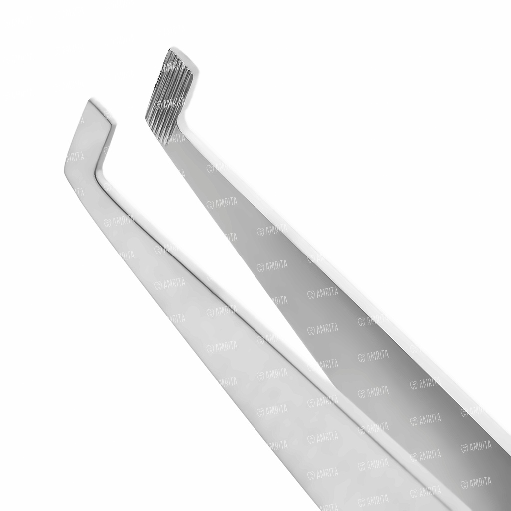 - Рифленая рабочая часть с поперечными насечками обеспечивает надежный захват брекетов без скольжения, минимизируя риск их повреждения или смещения;