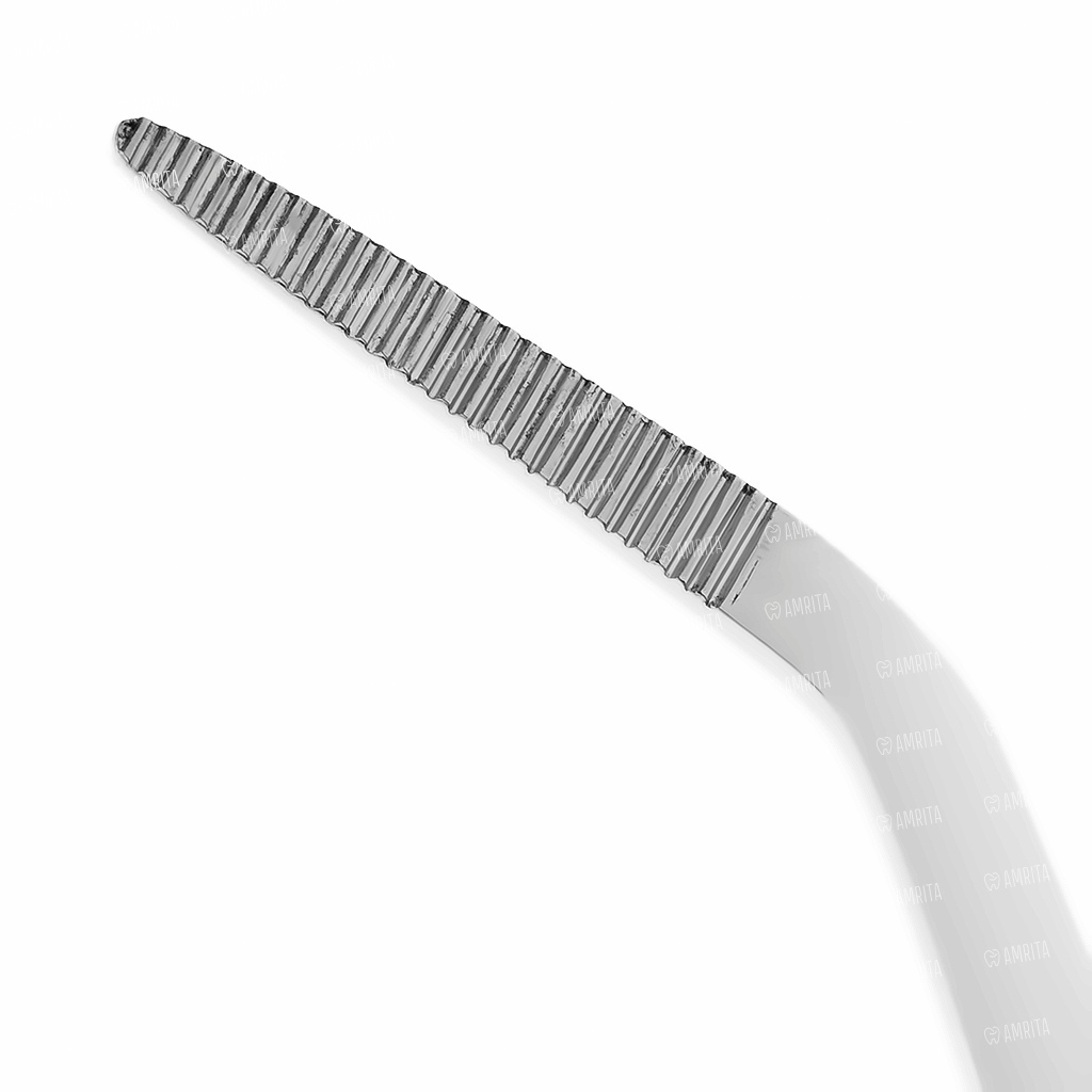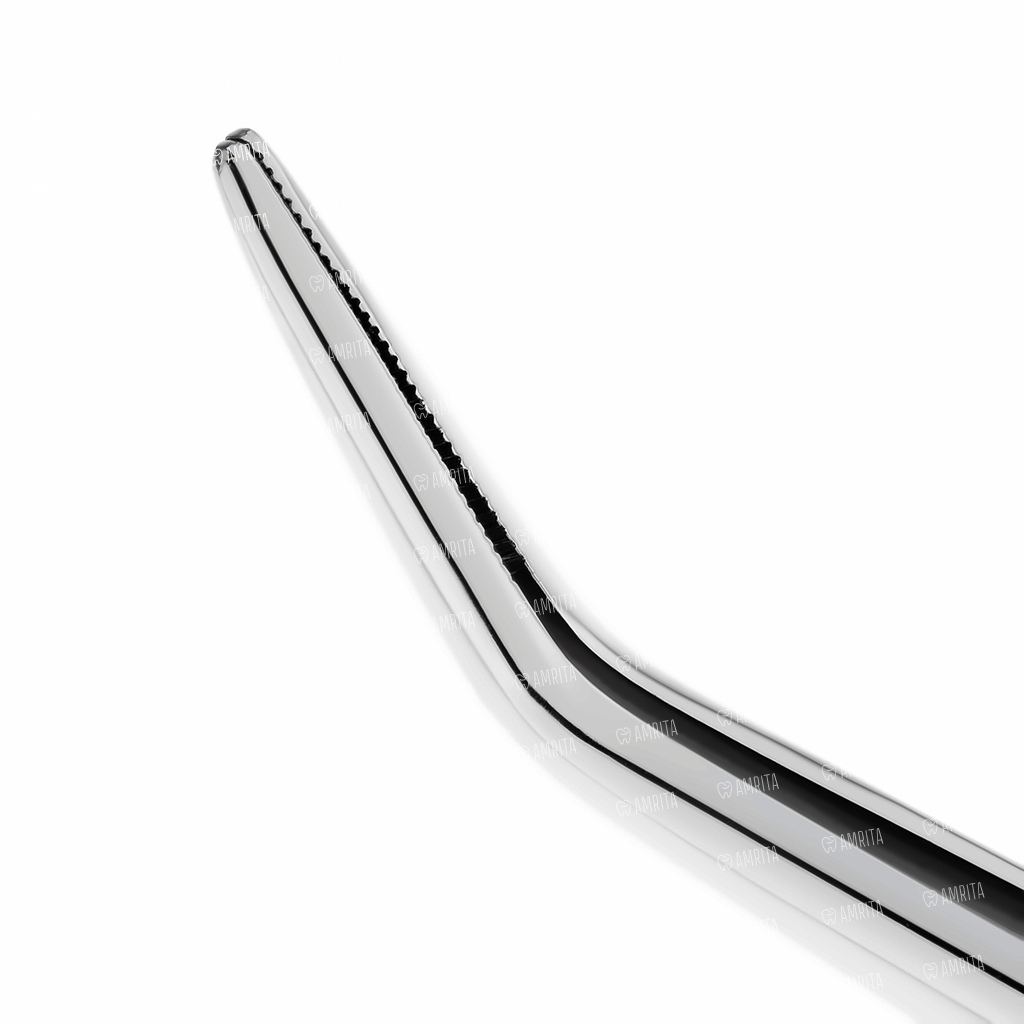 - Изогнутая форма обеспечивает удобный доступ к анатомически сложным и труднодоступным участкам полости рта, позволяя точно позиционировать инструмент в операционном поле;