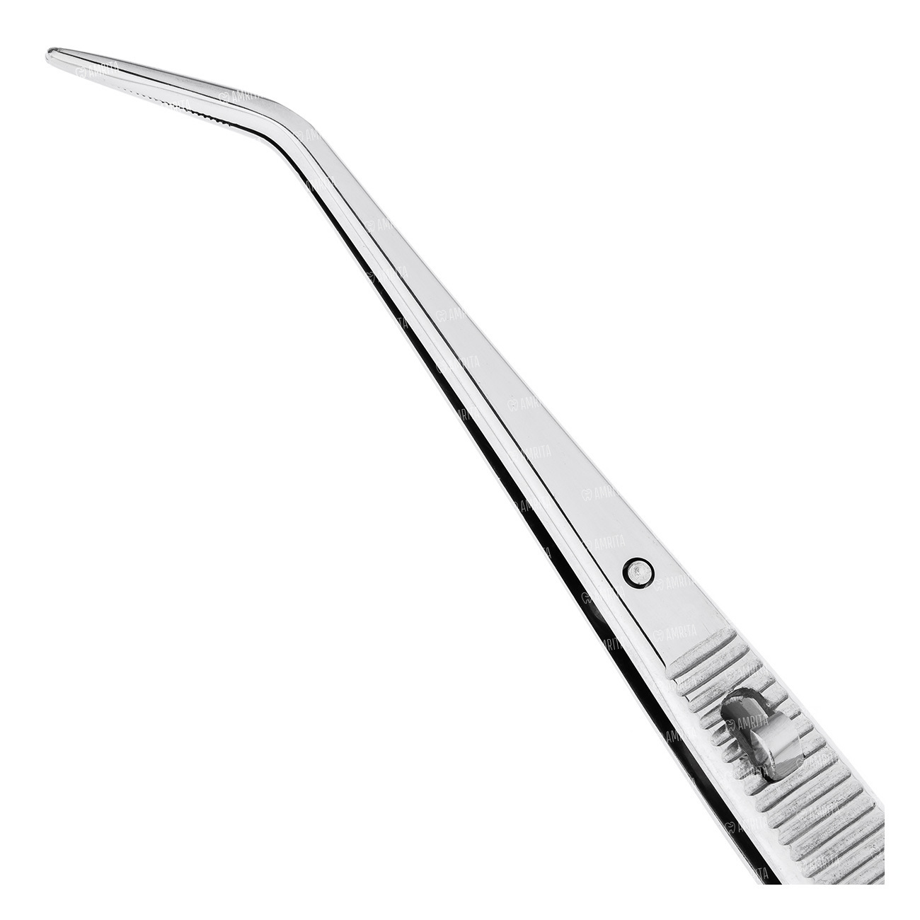 Насечки и особенности: внутренние поверхности рабочих частей имеют продольные атравматичные насечки. Эта конфигурация гарантирует надежный, но при этом щадящий захват слизистых оболочек, сосудов и других мягких тканей, предотвращая их соскальзывание и минимизируя чрезмерную компрессию, что способствует сохранению целостности тканей. В центральной части инструмента расположен зажимной механизм, позволяющий фиксировать пинцет в закрытом положении, что удобно для длительного удержания тканей или материалов.