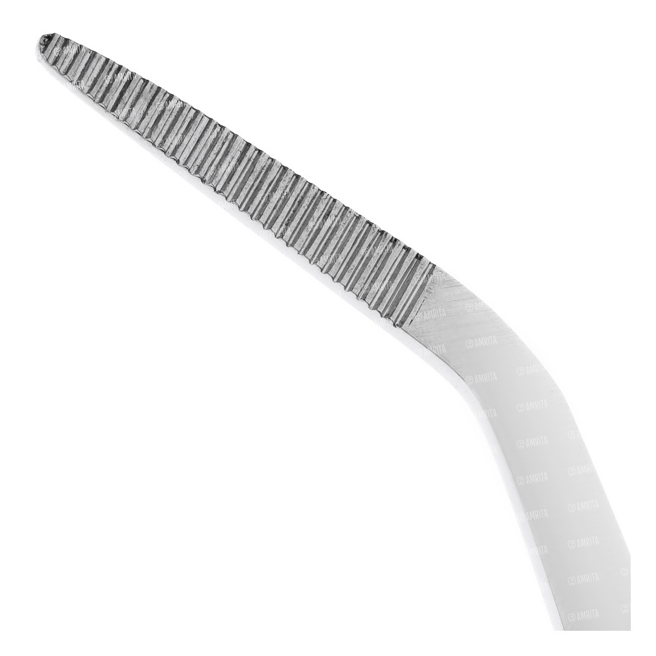 Вид инструмента и конструкция: данный пинцет относится к анатомическим инструментам, предназначенным для максимально деликатного обращения с тканями. Его изогнутая форма рабочей части, изогнутая под тупым углом по плоскости, обеспечивает эргономичный и удобный доступ к анатомическим структурам, расположенным под углом или в труднодоступных областях, улучшая обзор и точность манипуляций. Внешние поверхности ручек имеют горизонтальные ретенционные насечки, предотвращающие выскальзывание инструмента и обеспечивающие уверенную фиксацию в руке.