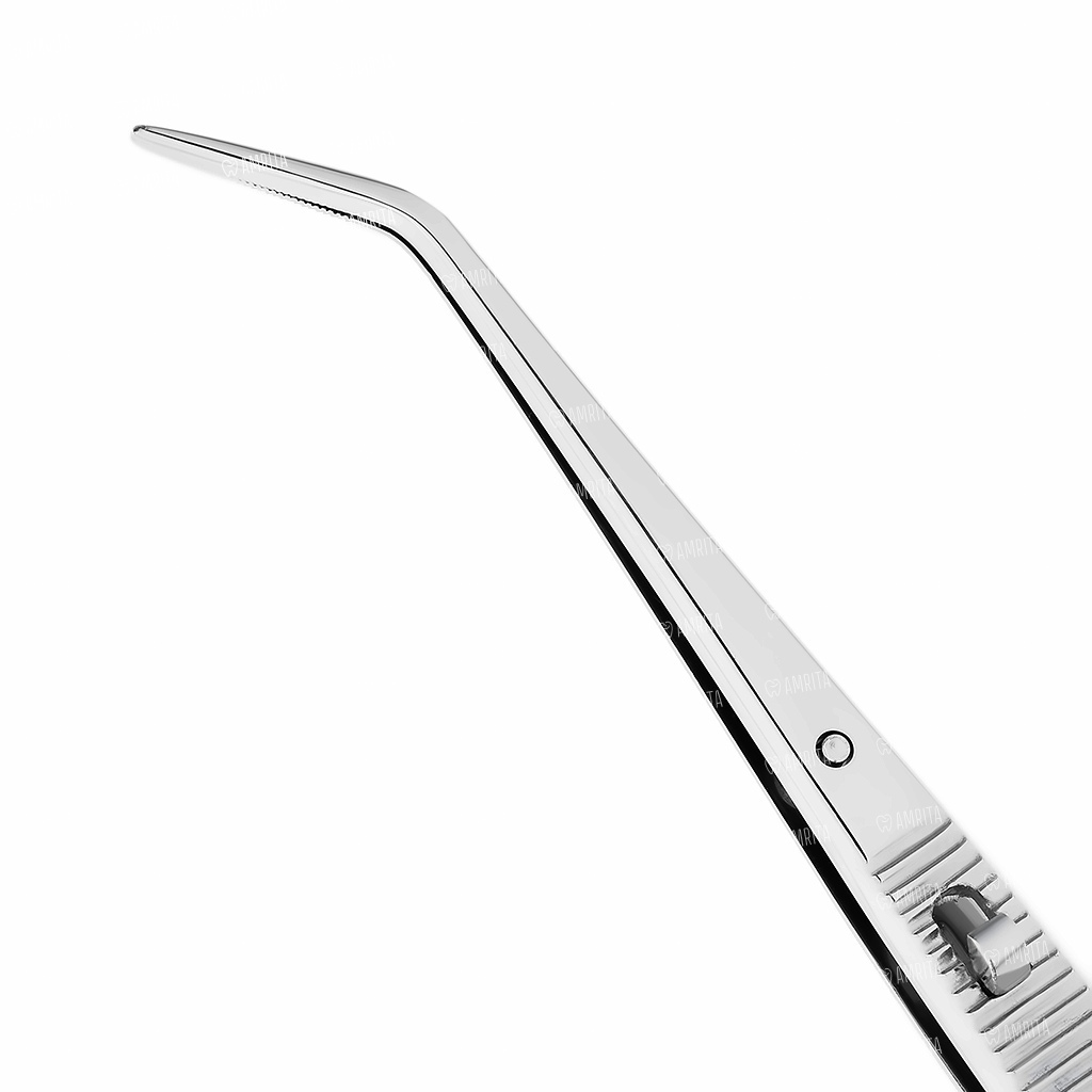 Анатомический изогнутый пинцет HLW модели College с замком предназначен для надежного удержания мягких тканей в стоматологических операциях. Рифленая рабочая часть с поперечными насечками в сочетании с фиксирующим механизмом обеспечивает плотный захват и стабильную фиксацию тканей без риска их смещения.