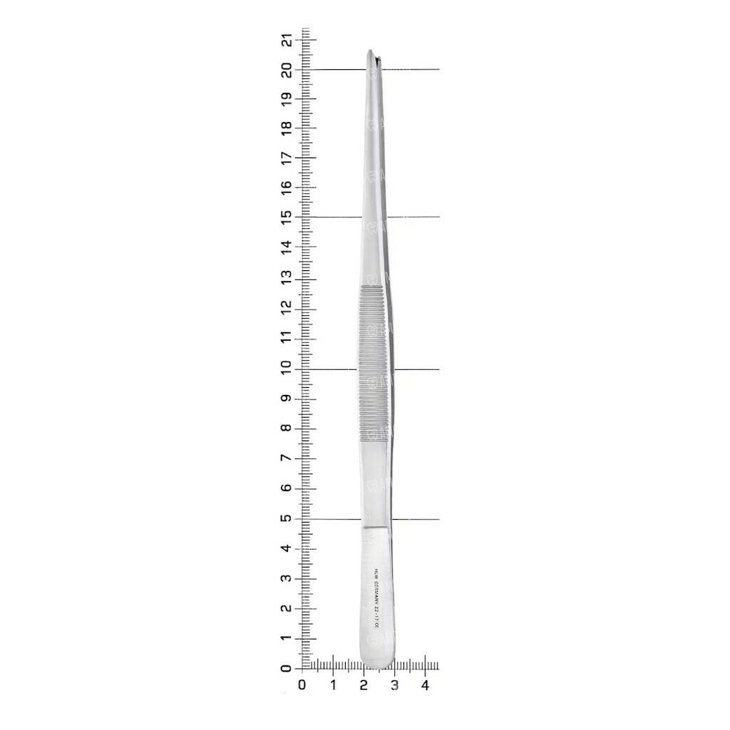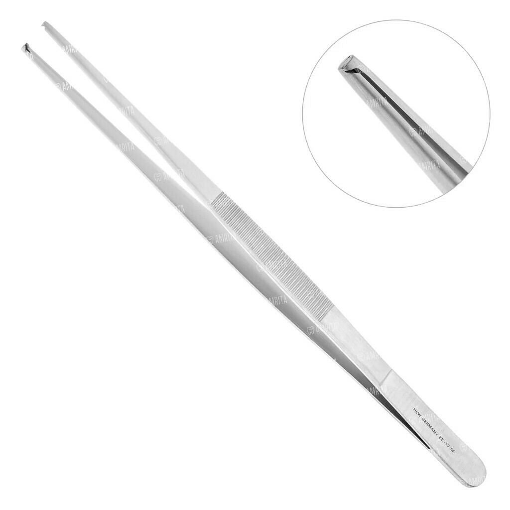Пинцет хирургический HLW №22-17, прямой, для фиксации мягких тканей, гладкие зубчики 1х2, L=200 мм, сталь, 1 шт