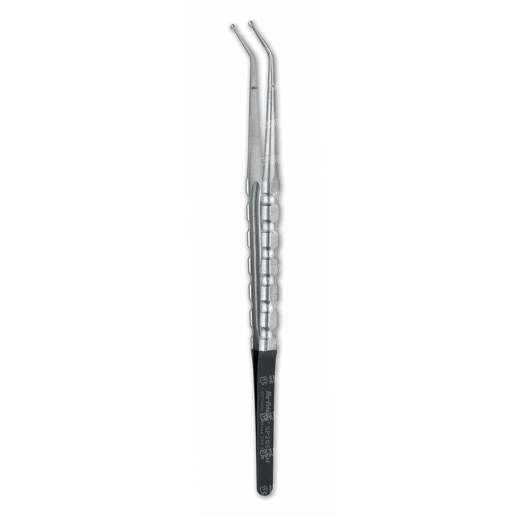 Тонкие рабочие кончики надежно фиксируют и вносят нить в полость рта. Удобная конструкция помогает максимально быстро и просто управлять пинцетом. Длина пинцета в 18 см помогает работать на отдаленных участках ротовой полости.