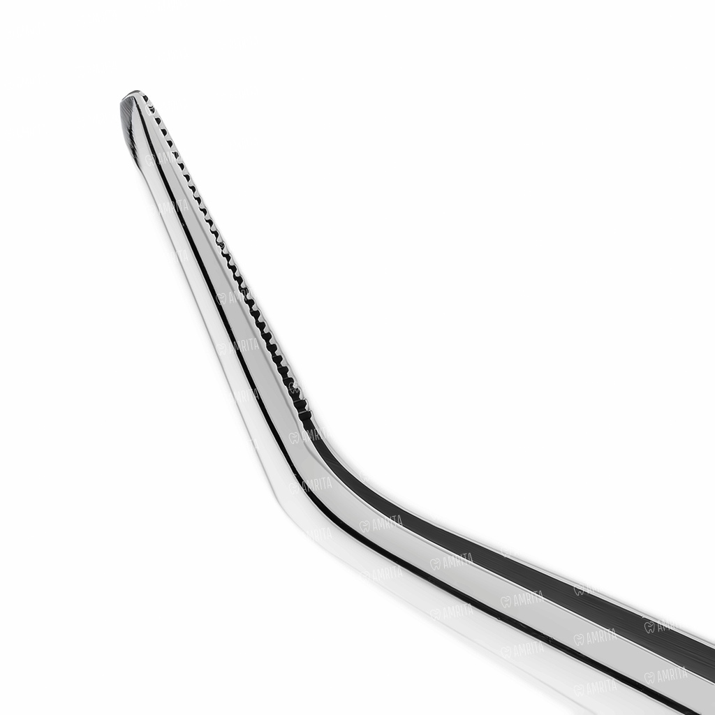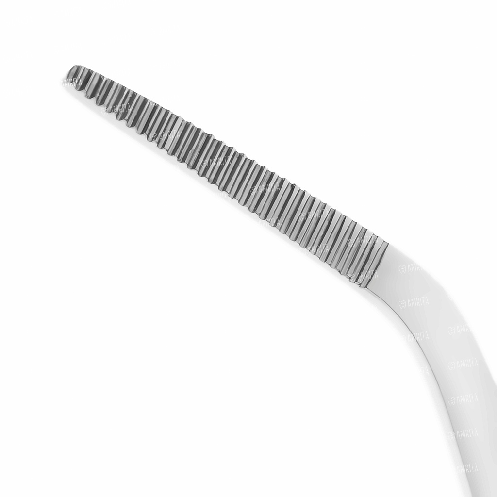 - Изогнутая форма облегчает доступ к труднодоступным участкам полости рта, позволяя точно позиционировать инструмент при хирургических манипуляциях;