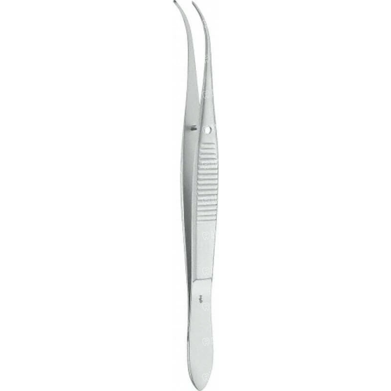 Вид инструмента и конструкция: данный пинцет относится к категории хирургических инструментов, предназначенных для универсального применения. Его изогнутая форма рабочей части специально разработана для обеспечения оптимального обзора и удобного доступа к труднодоступным областям, повышая маневренность и точность хирурга. Инструмент ощущается как естественное продолжение руки, предлагая исключительную надежность и стабильность в работе.