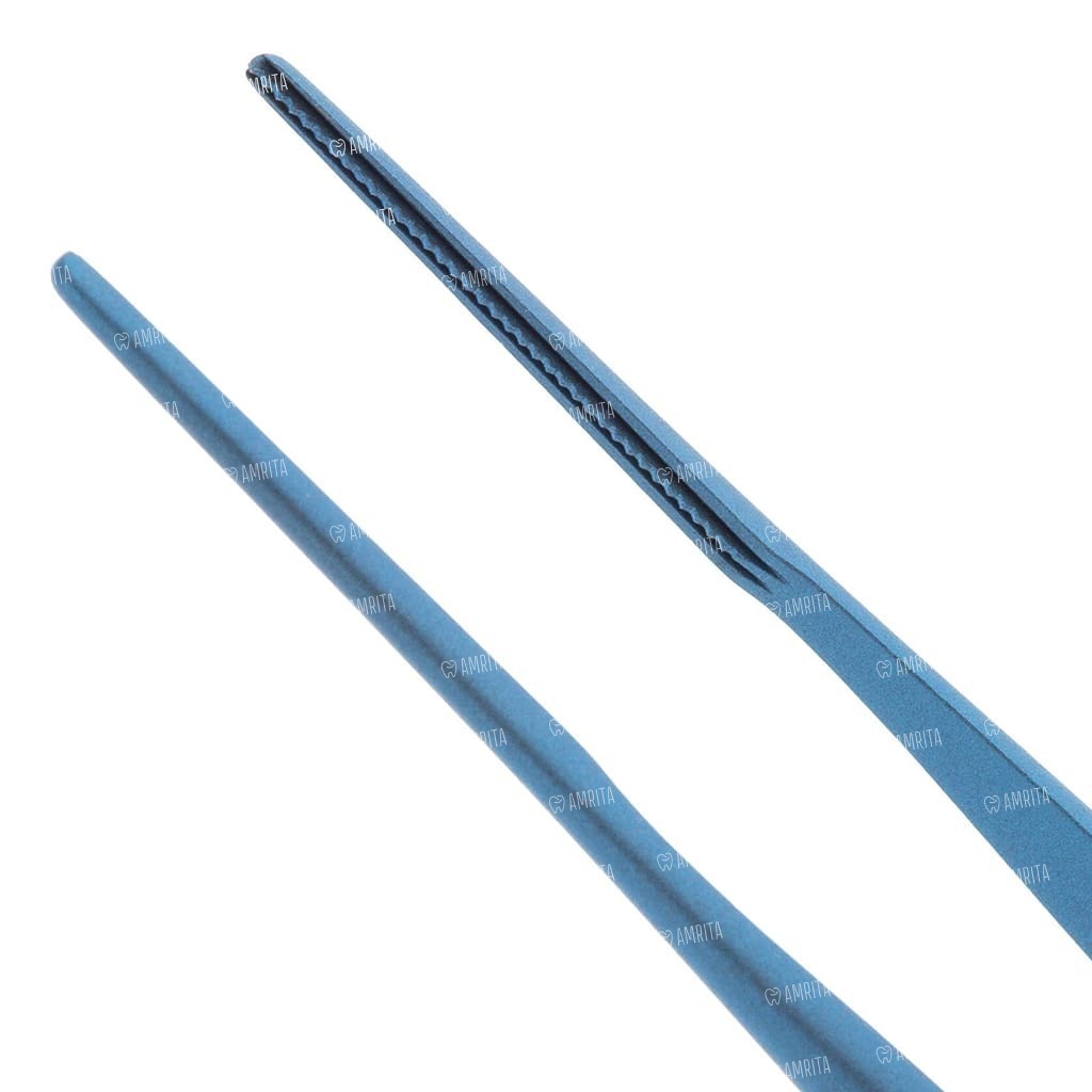 - Прямая форма пинцета дает полный контроль над расположением тканей, врач может аккуратно переместить и зафиксировать их в нужном положении без риска смещения;