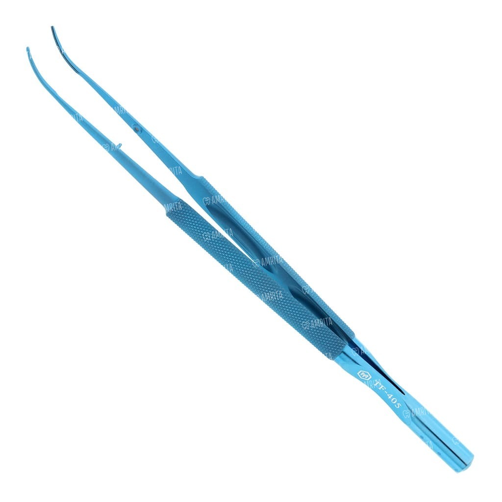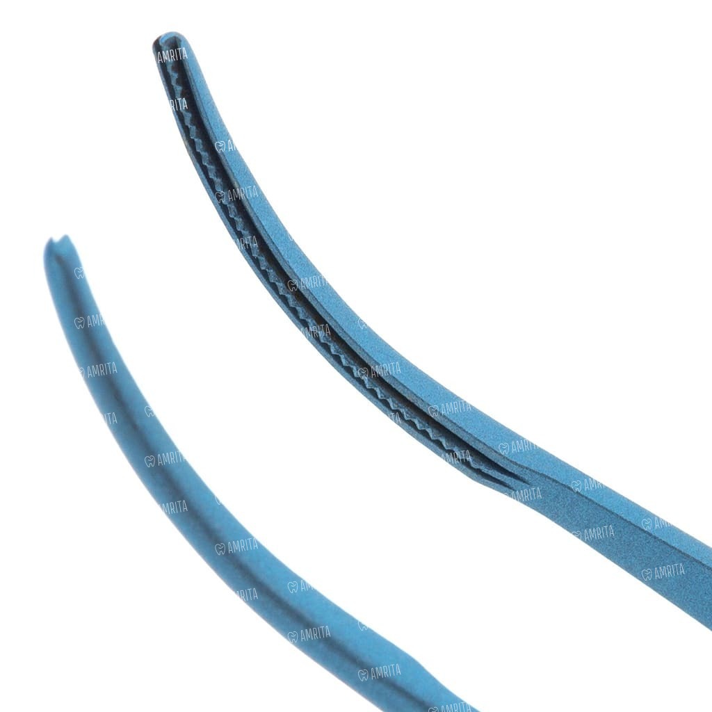 - Плавноизогнутая форма пинцета дает возможность эффективно работать в глубоких и узких участках полости рта, где прямой инструмент менее удобен;