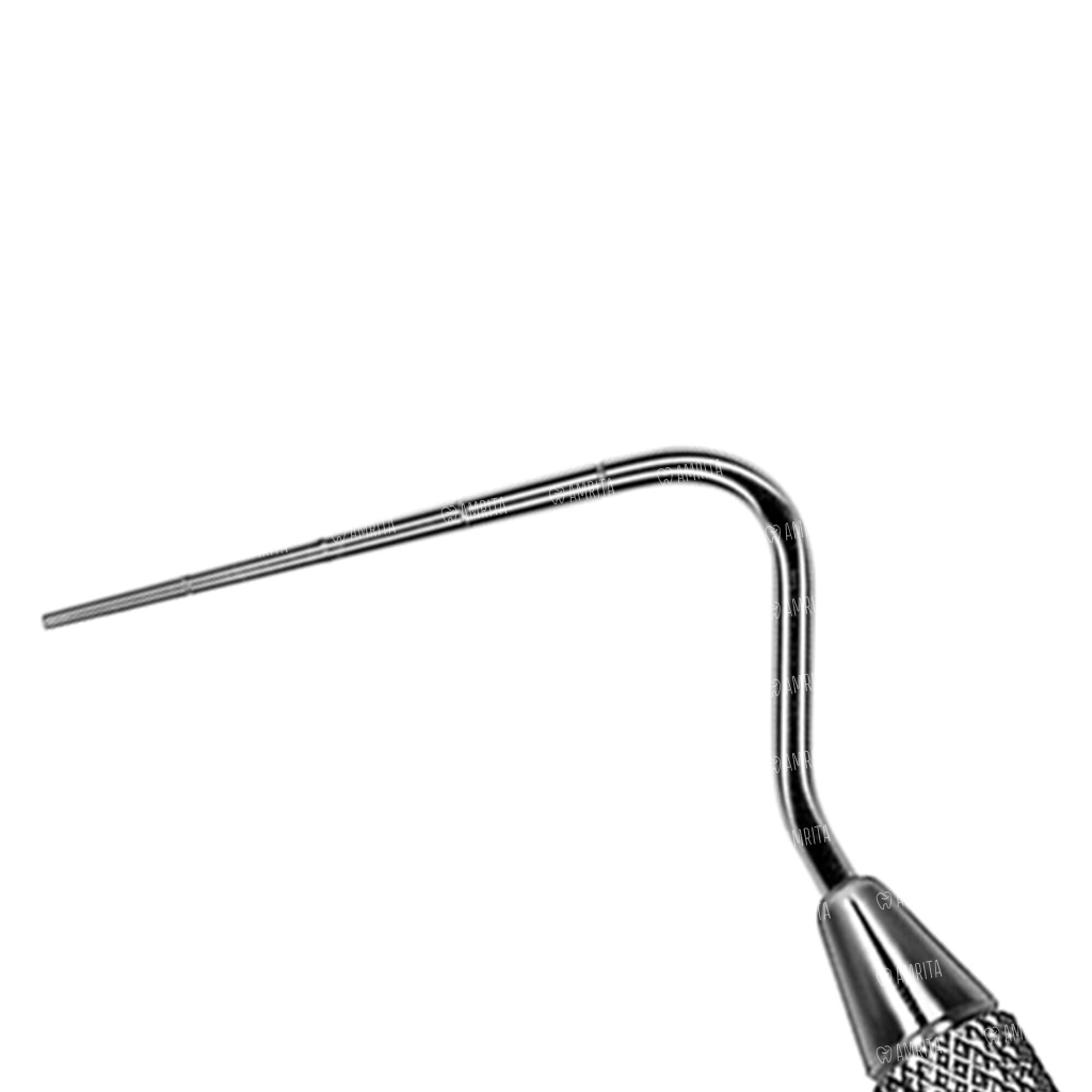 - Двусторонний дизайн наконечников 0.5 мм и 0.6 мм. Наличие двух рабочих концов разного диаметра обеспечивает универсальность применения инструмента в каналах различной ширины и сложности анатомического строения;