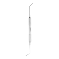 Переходник или шейка. Соединительный элемент между ручкой и рабочей частью. Обычно изогнута вовнутрь, чтобы врач смог работать на труднодоступных участках ротовой полости.