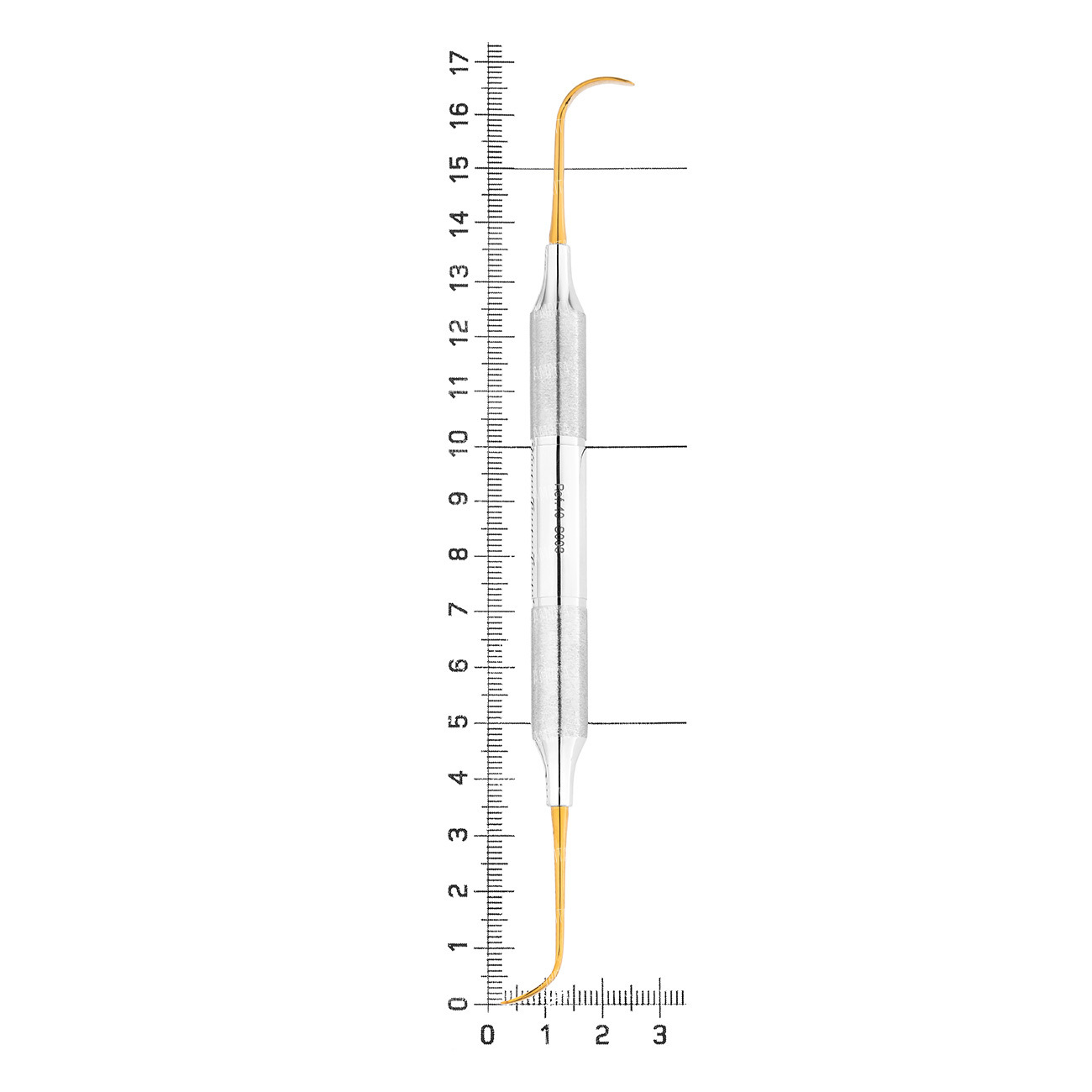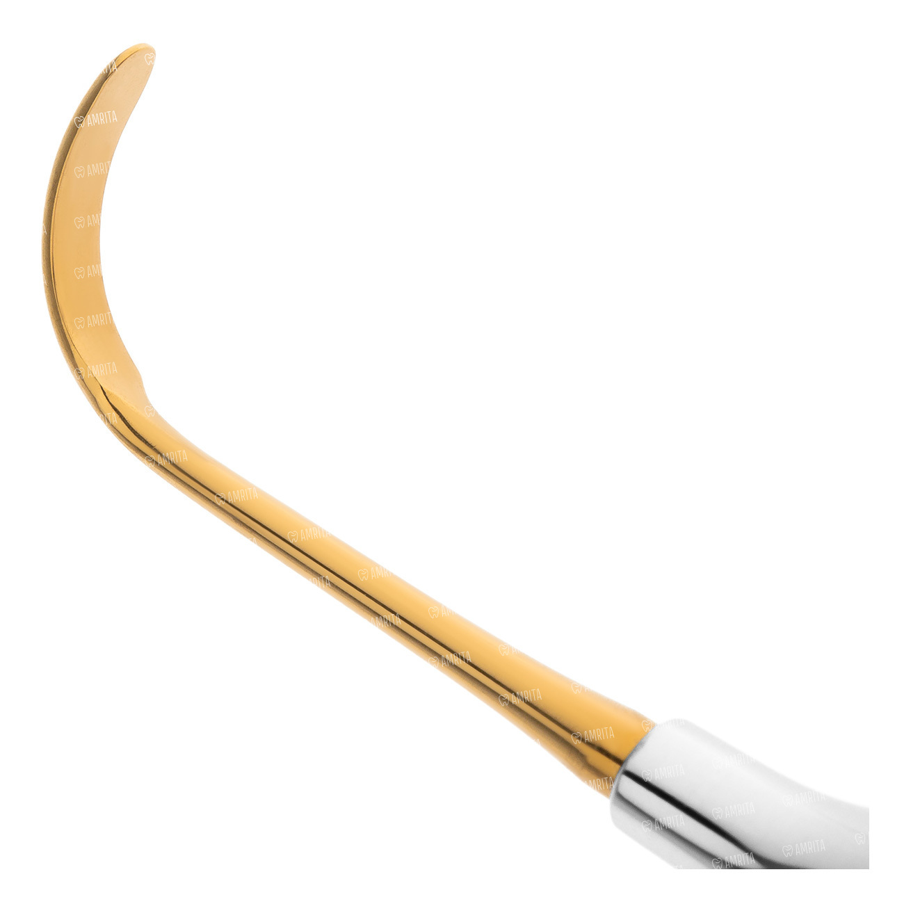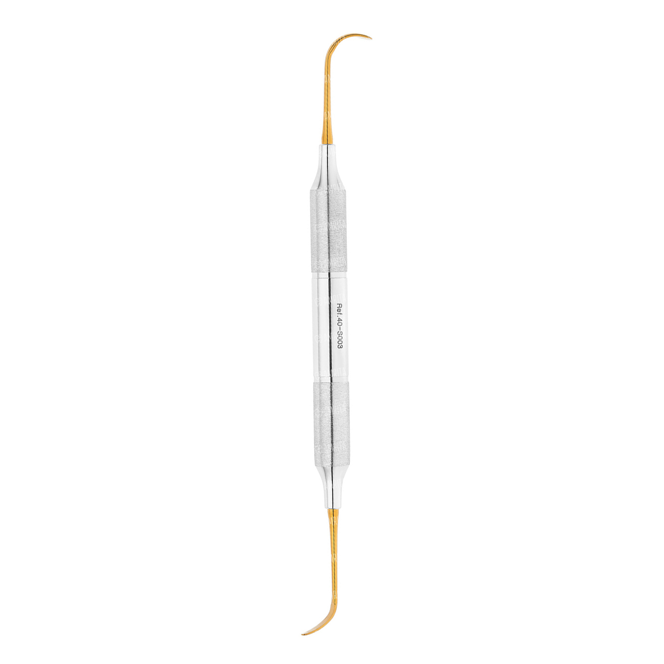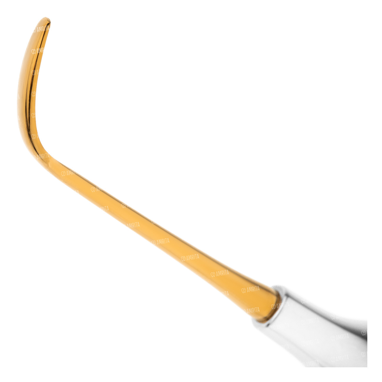 Рабочие части и функциональные стержни стоматологического инструмента покрыты нитрид титановым материалом, увеличивающим срок службы инструмента. Благодаря золотому цвету покрытия рабочая часть распатора хорошо выделяется при проведении манипуляций в ротовой полости.