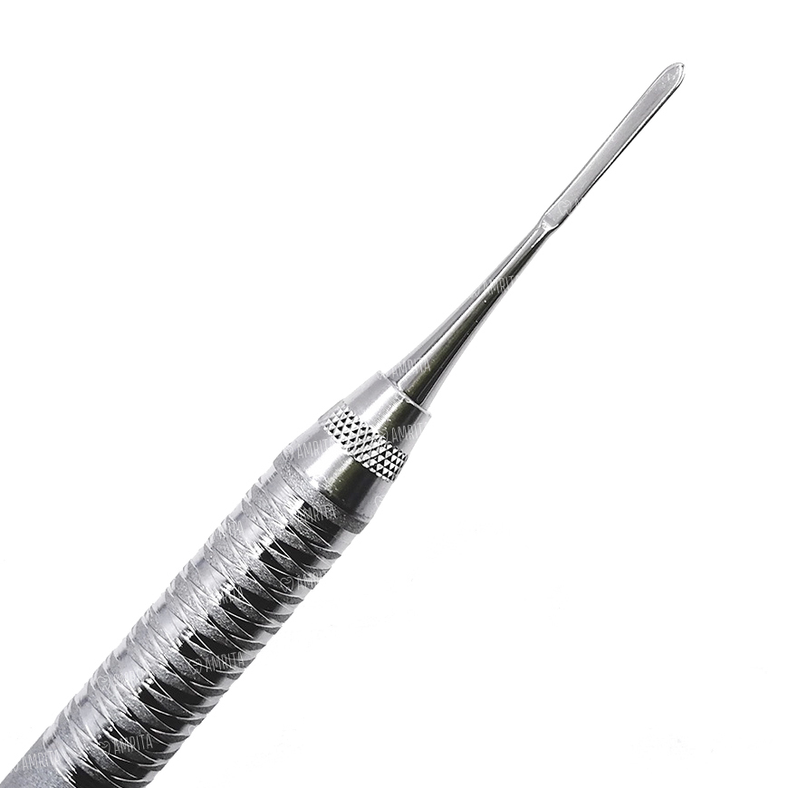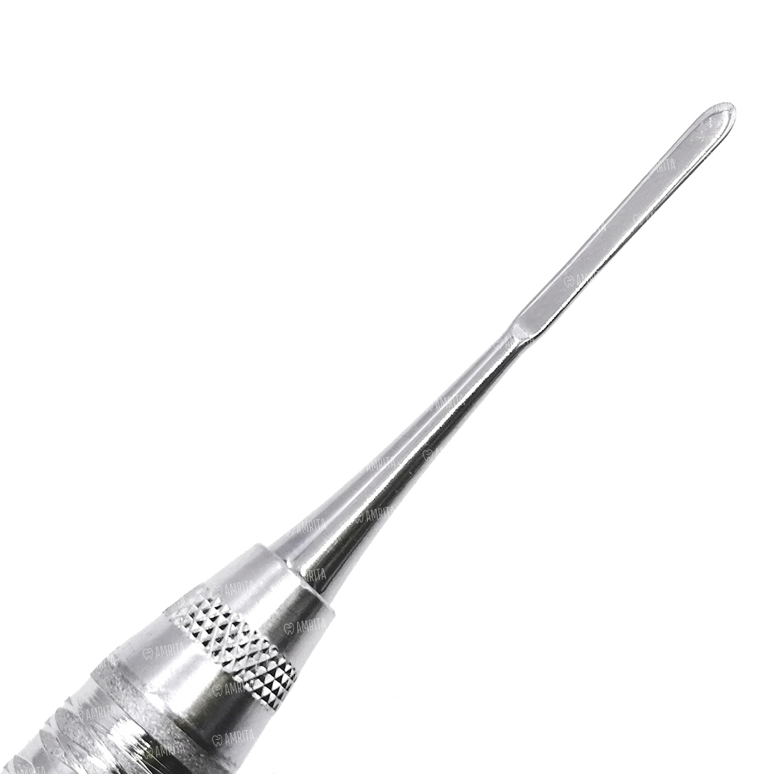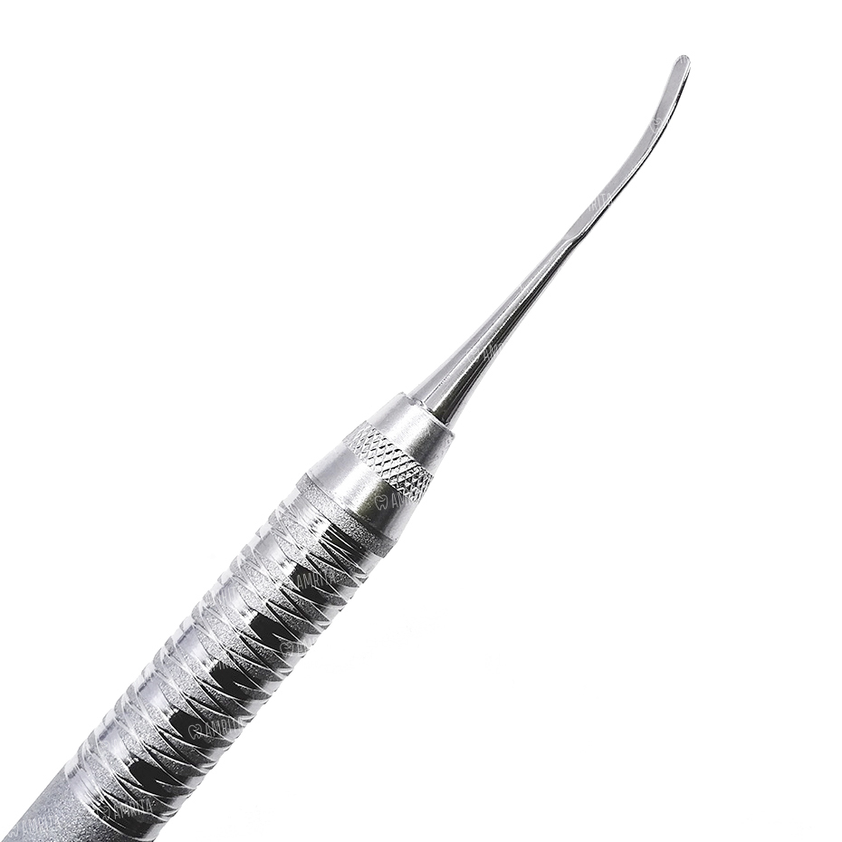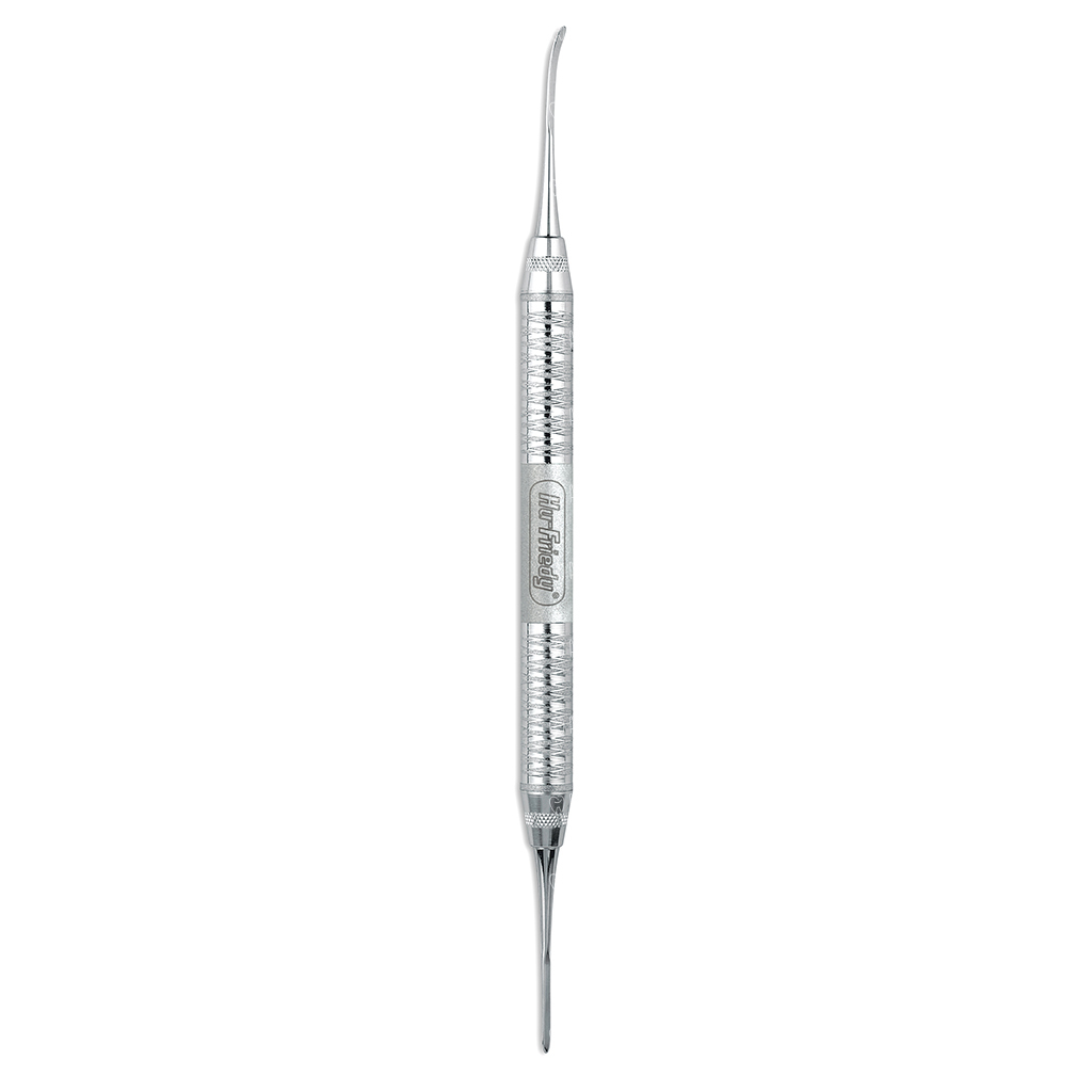 Двусторонний распатор серии Allen от американской компании Hu-Friedy используется для работы в области фронтальных зубов. Прямая узкая рабочая часть помогает отражать ткани и проводить восстановительные туннельные процедуры рецессии десны.