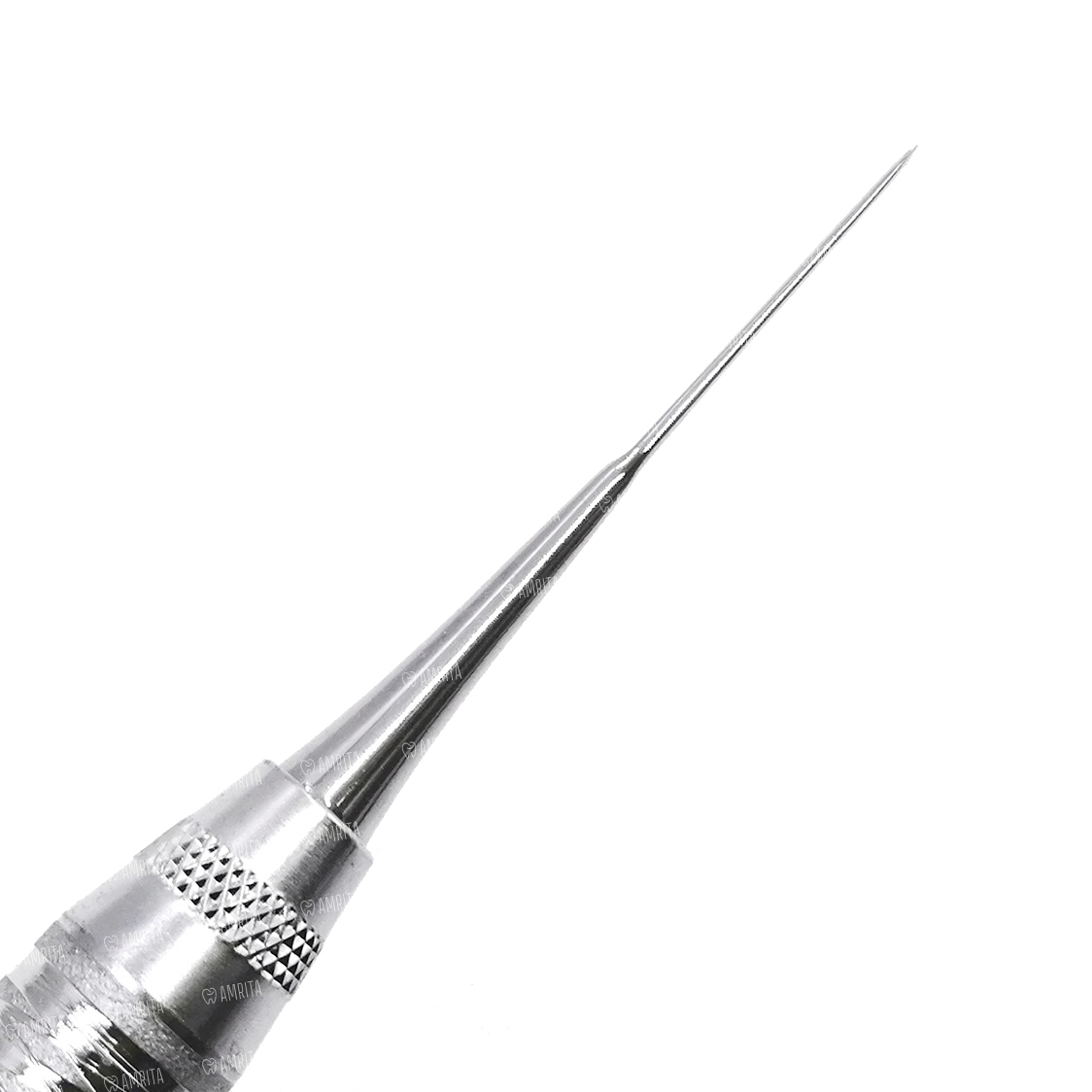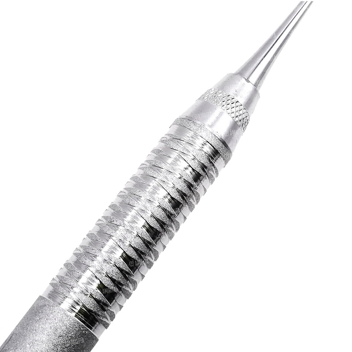Широкая цилиндрическая ручка удобно ложится в руку стоматолога. Поперечные рельефные насечки предотвращают выскальзывание инструмента.