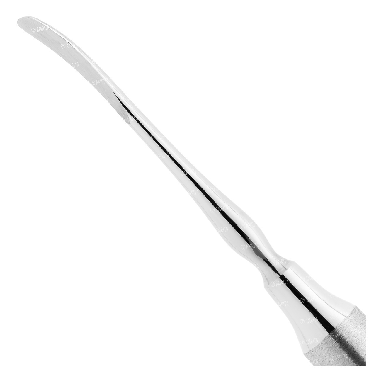 Изгиб рабочих поверхностей стоматологического распатора позволяет работать в труднодоступных участках ротовой полости.