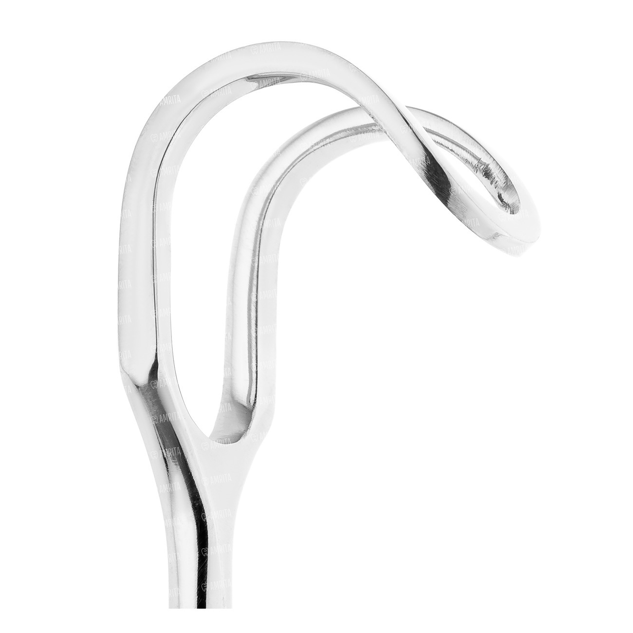 Специальная форма рукоятки инструмента имеет два отверстия под пальцы руки, что способствует удобному захвату ретрактора и успешному проведению хирургической операции.