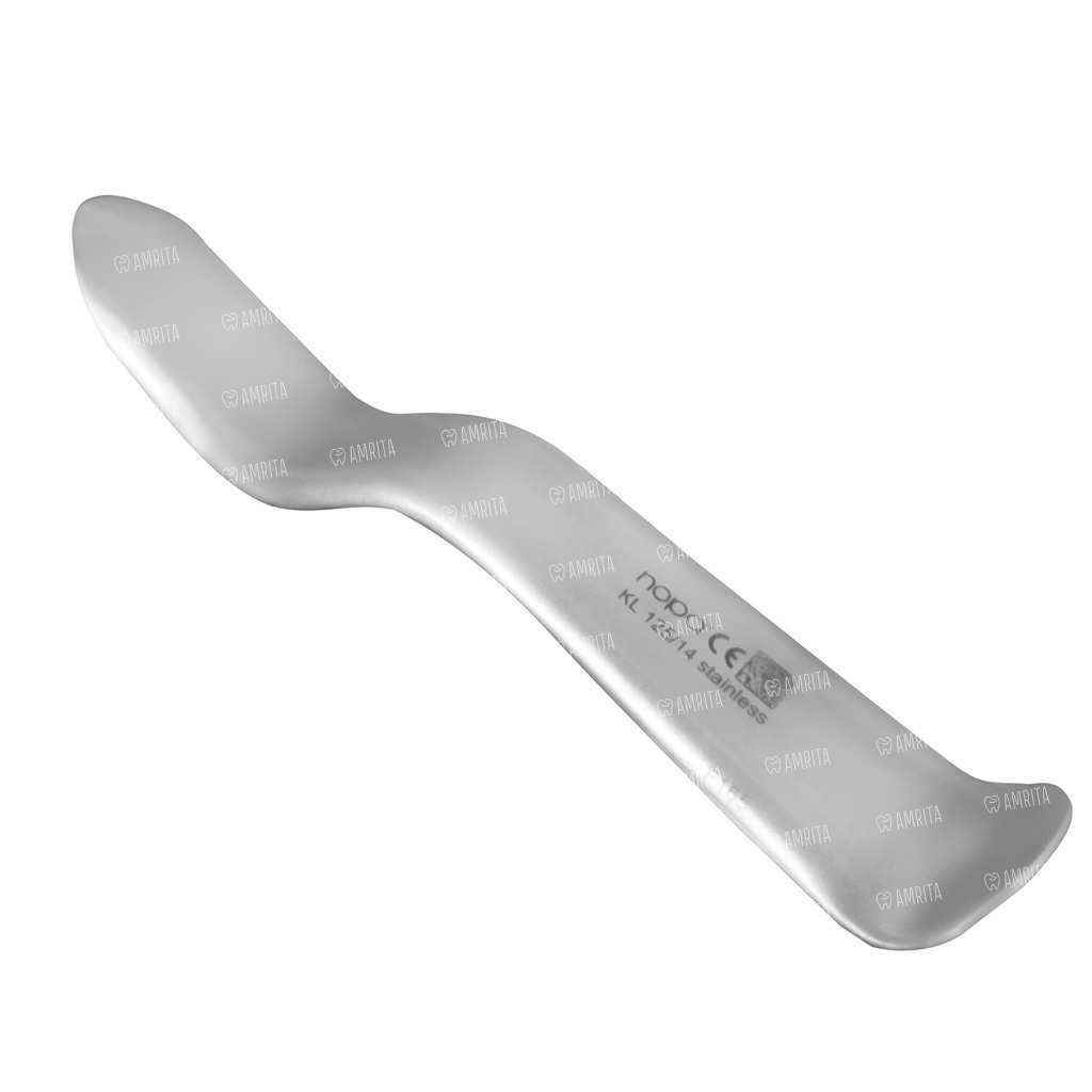 Инструмент выполнен в виде металлической пластины с атравматичными гранями имеет двойной разносторонний изгиб по плоскости. С одной стороны, ретрактор Nopa Instruments имеет изгиб в виде дуги, который плотно фиксируется и делает отведение щеки менее травматичным. Другой конец роторасширителя выполнен в виде прямой пластины, предназначенной для удержания языка в требуемом положении при хирургических операциях.