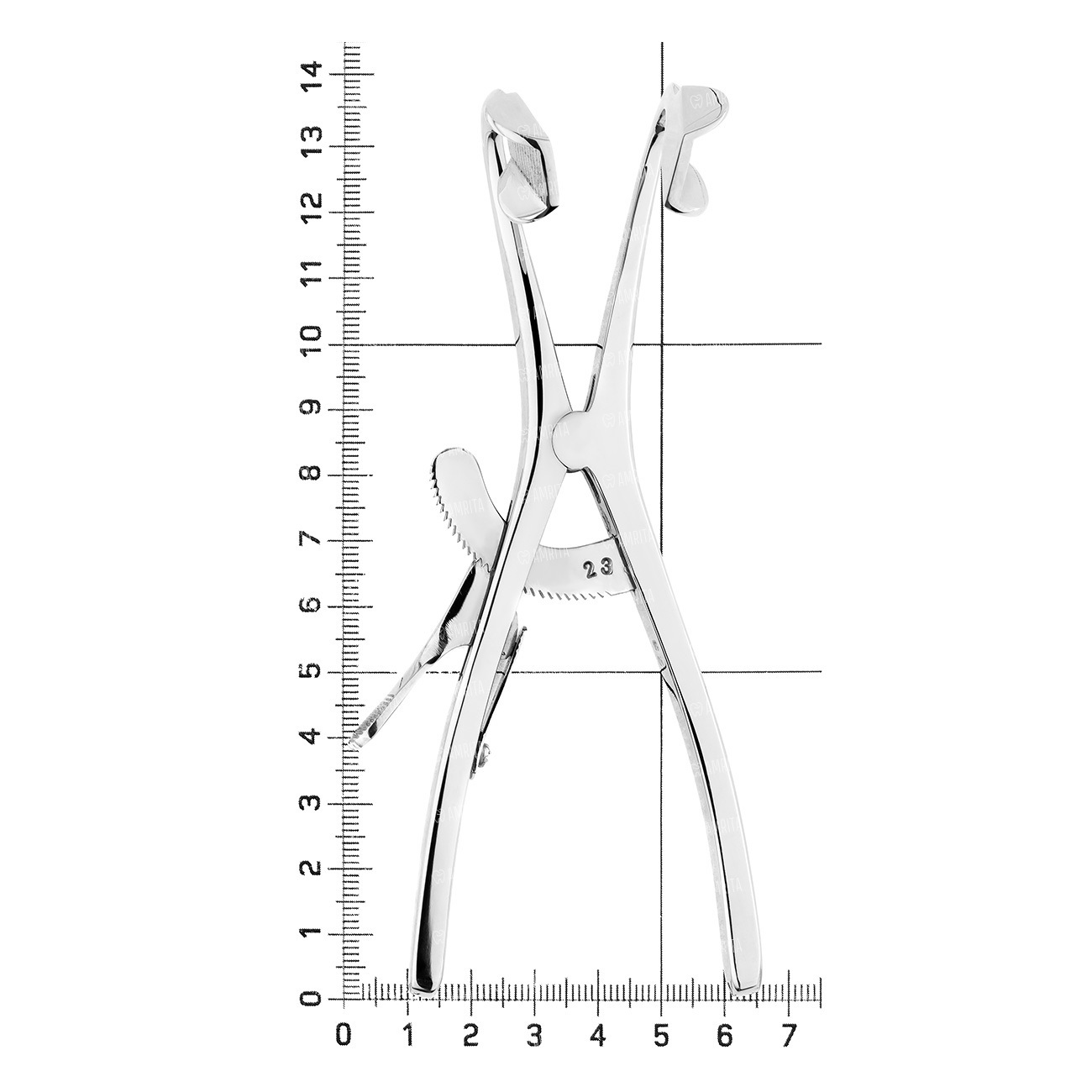 На браншах имеется механизм противодействия закрыванию, со спусковым рычажком. Общая длина инструмента не менее 14 см.