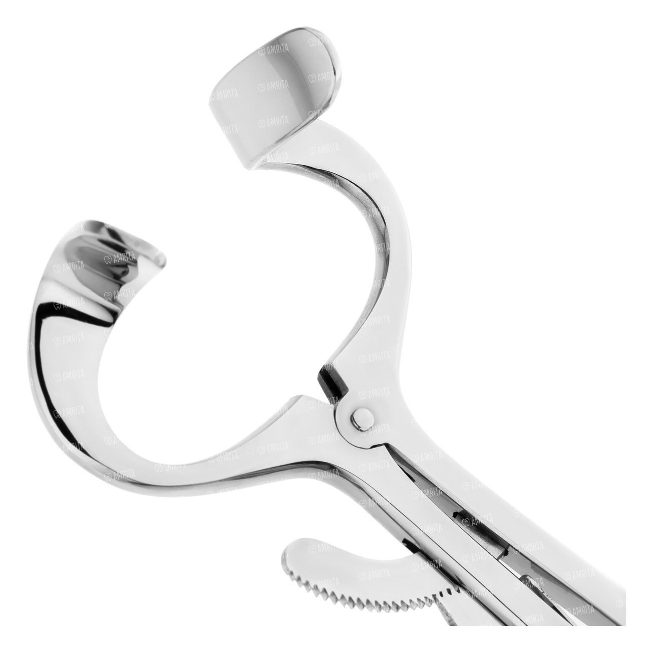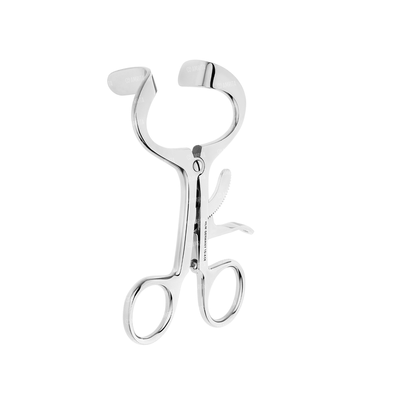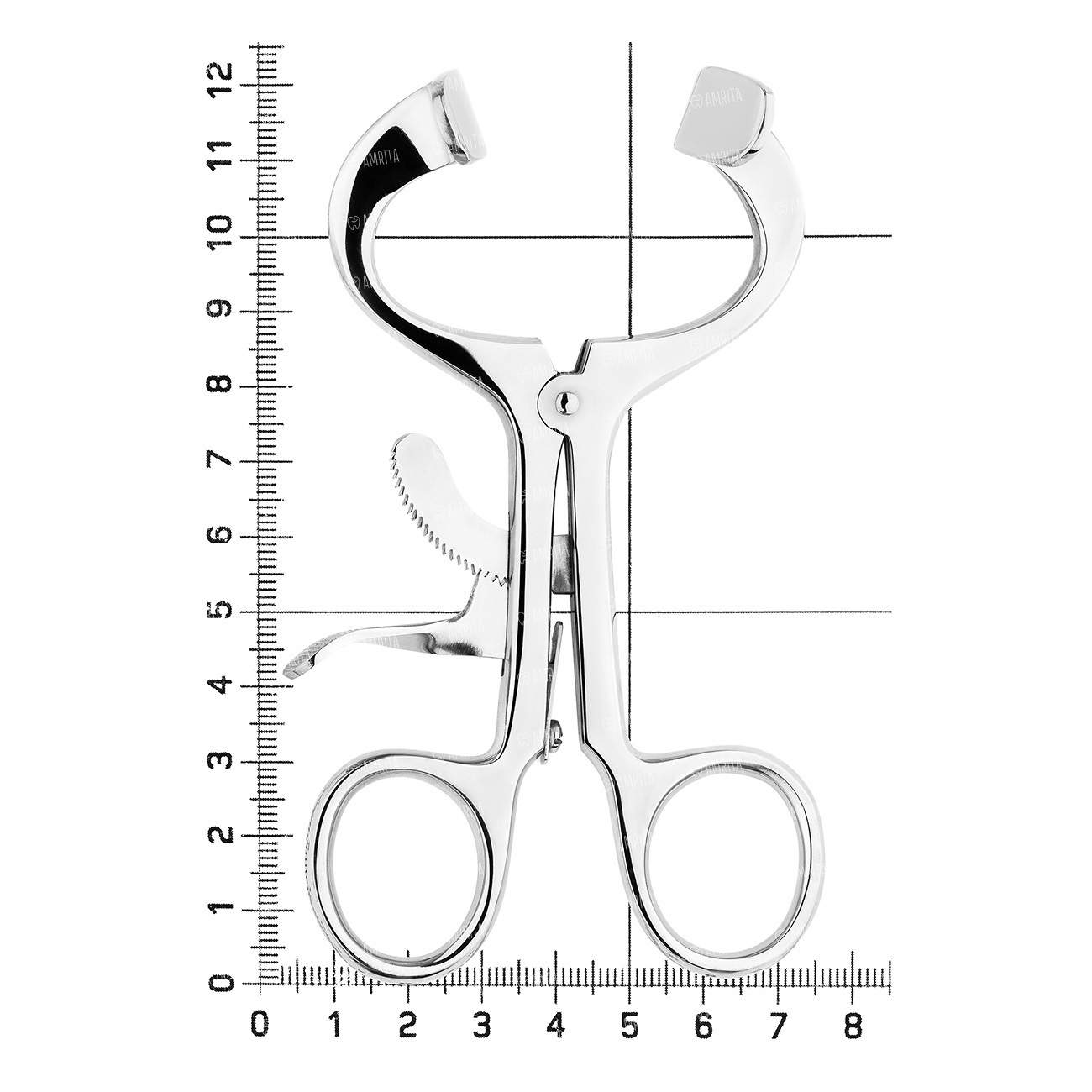 Промежуточные части снабжены с автоматическим фиксатором ширины разведения со спусковым рычажком. Применяется для принудительного открывания рта и фиксации челюстей в раскрытом положении у пациентов под общей анестезией или в случае потери сознания. Распределение массы инструмента такого, что он может быть установлен непосредственно врачом и далее удерживаться во рту самостоятельно, без помощи ассистента.