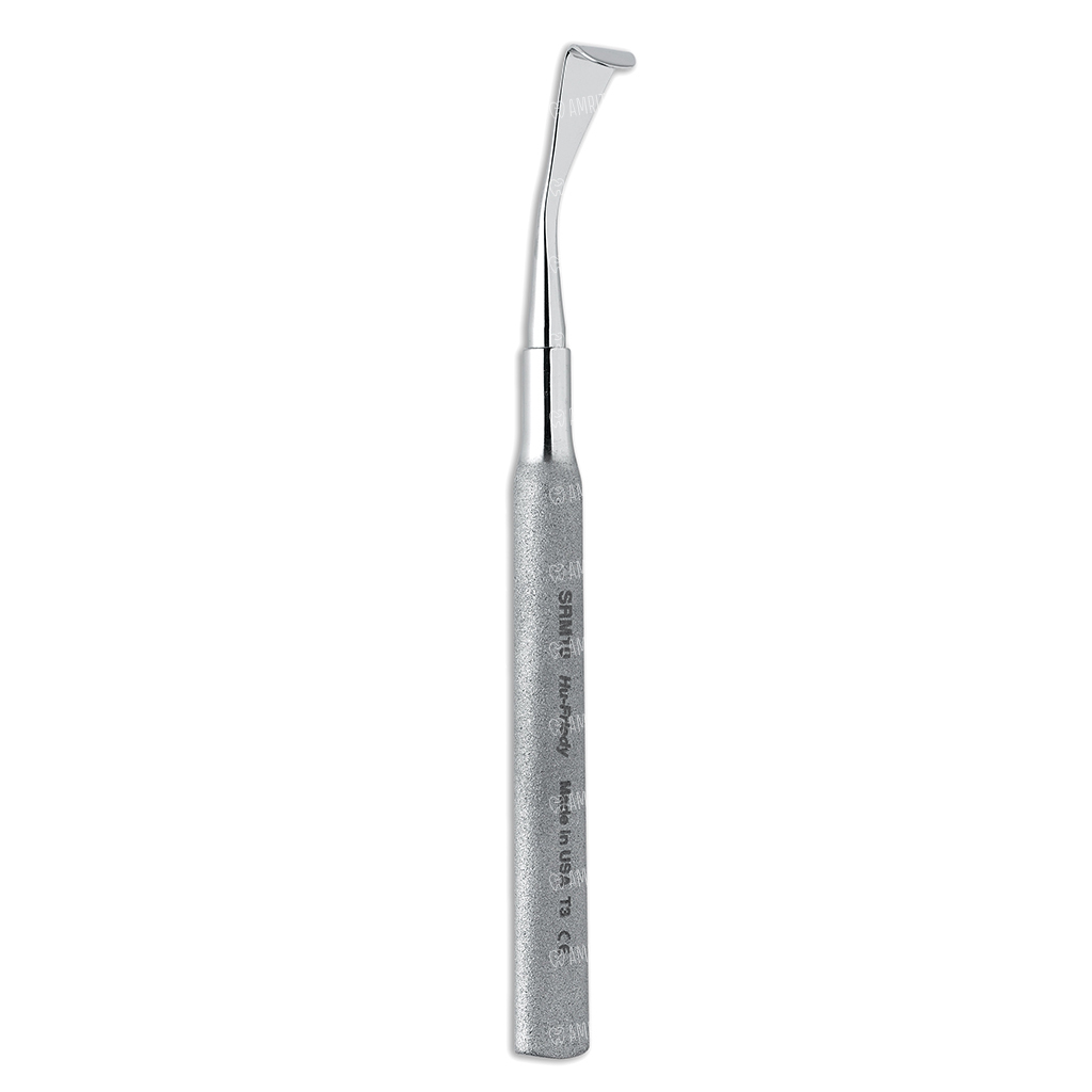Изогнутый хвостовик и располагающаяся поперечно ручке рабочая часть помогают работать на самых труднодоступных участках ротовой полости.