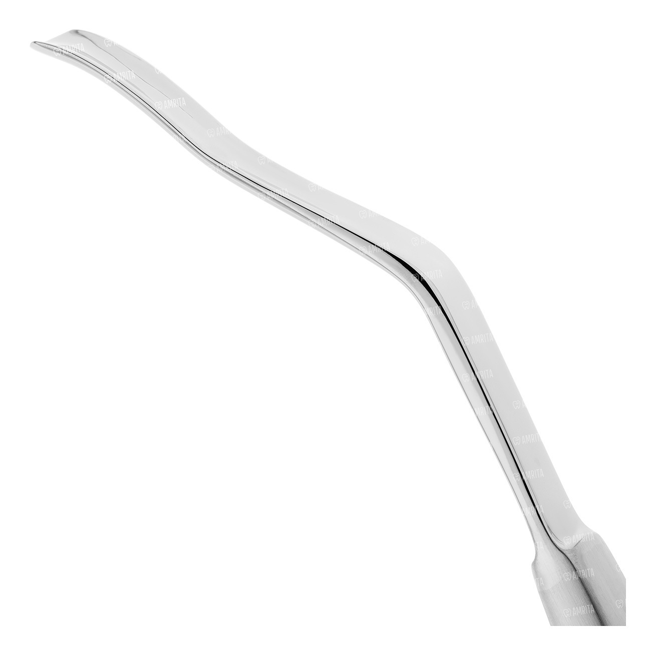 Ручка ретрактора удобна в использовании и выполнена в виде вытянутого эллипса. Продольные грани на внешней поверхности рукоятки позволяют захватить стоматологический инструмент и снизить нагрузку на кисть при хирургических вмешательствах.