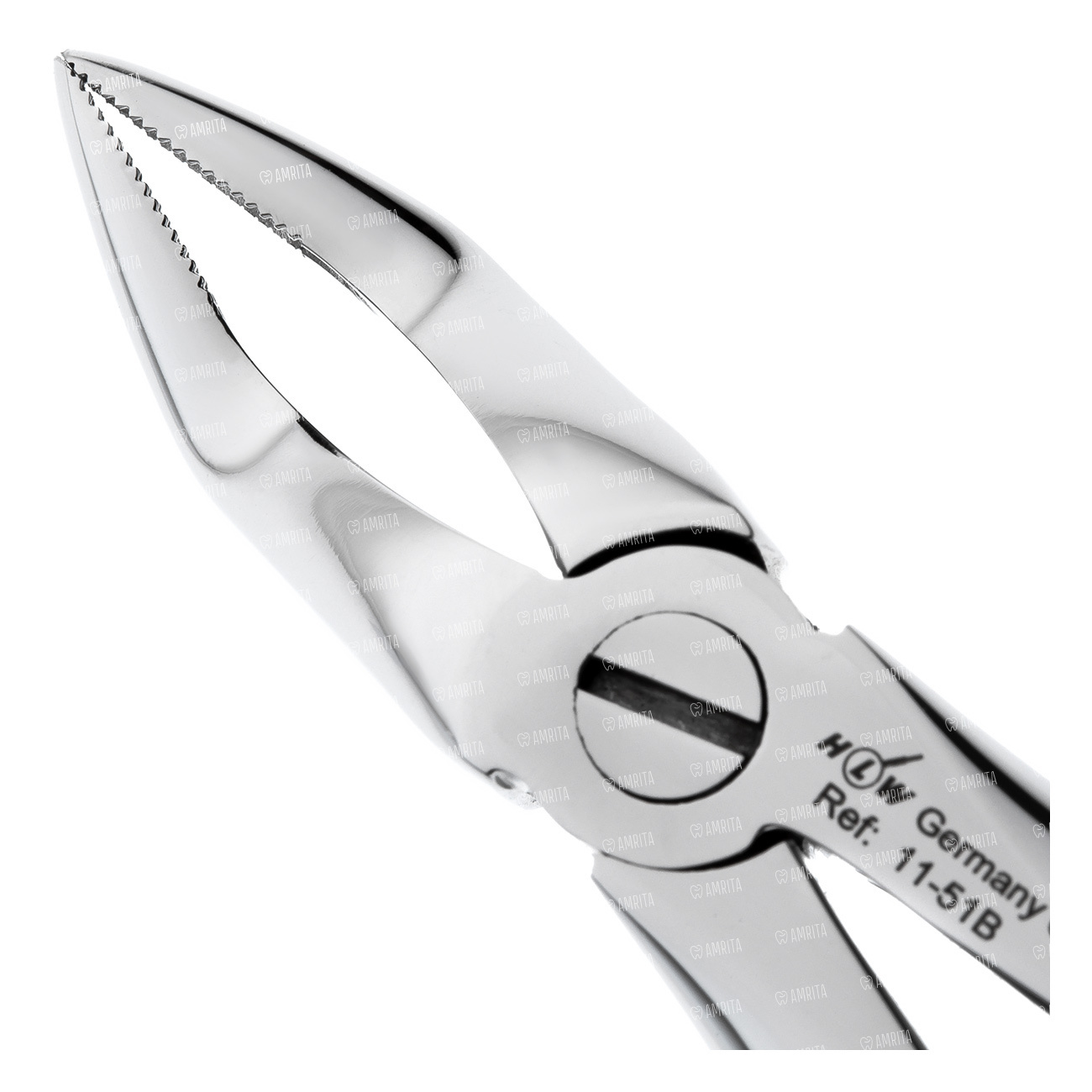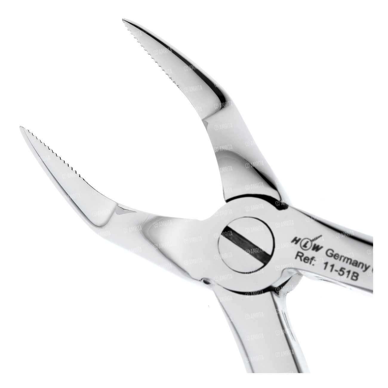 Щипцы для удаления клыков, премоляров с сильно разрушенной коронковой частью и извлечения разделённых корней молочных моляров верхней челюсти. Имеют укороченные бранши малой толщины с микроретенционными насечками на внутренней поверхности, улучшающими захват фрагмента корня в лунках альвеол с овальным поперечным сечением. Бранши изогнуты по форме байонета кончики плотно контактируют.