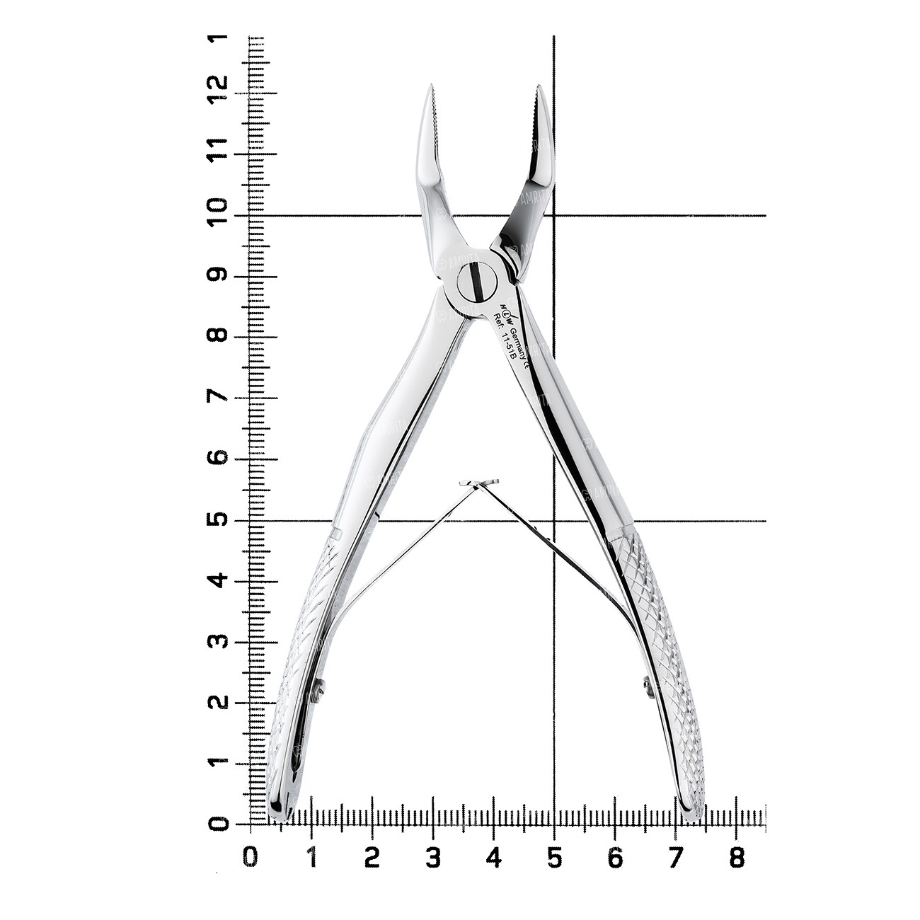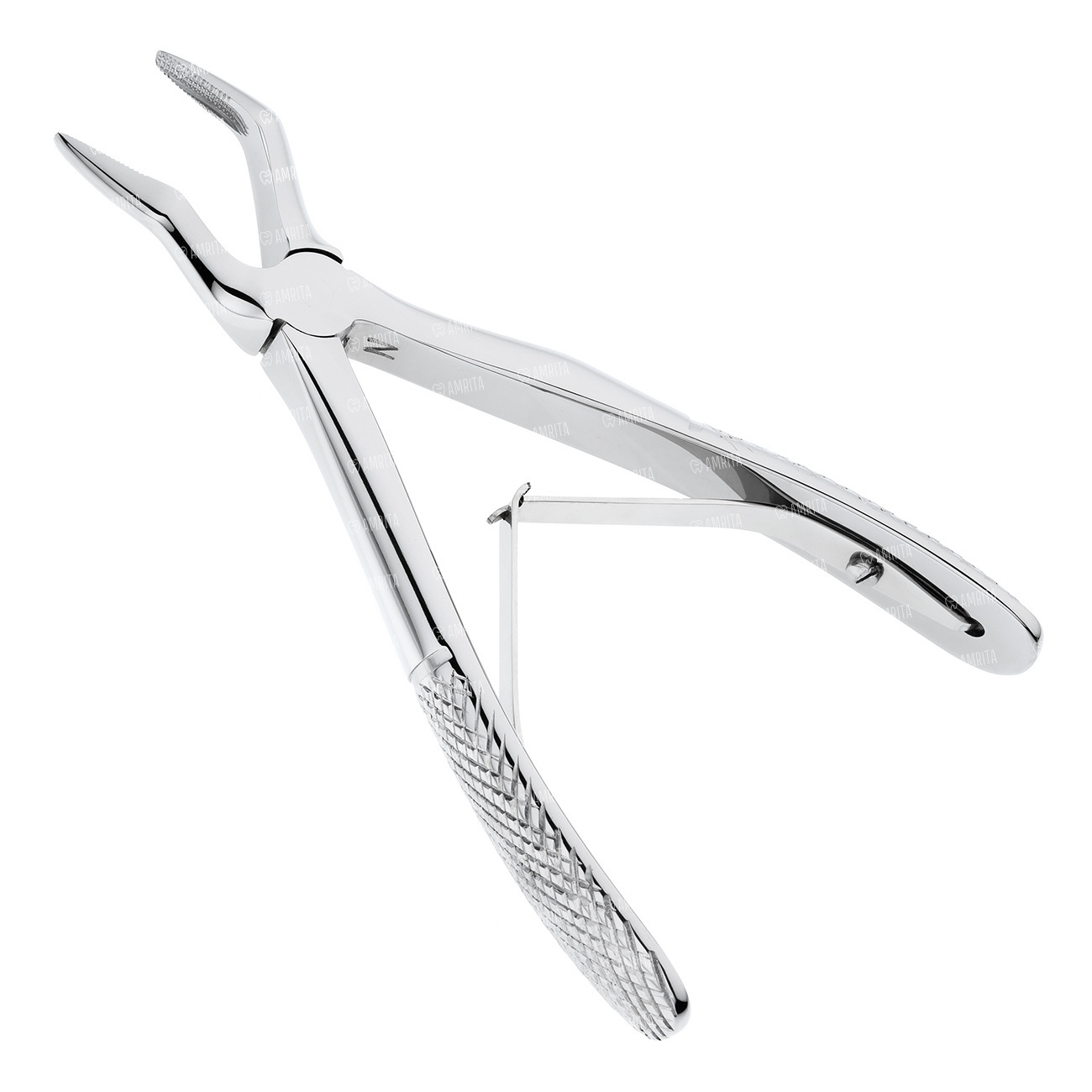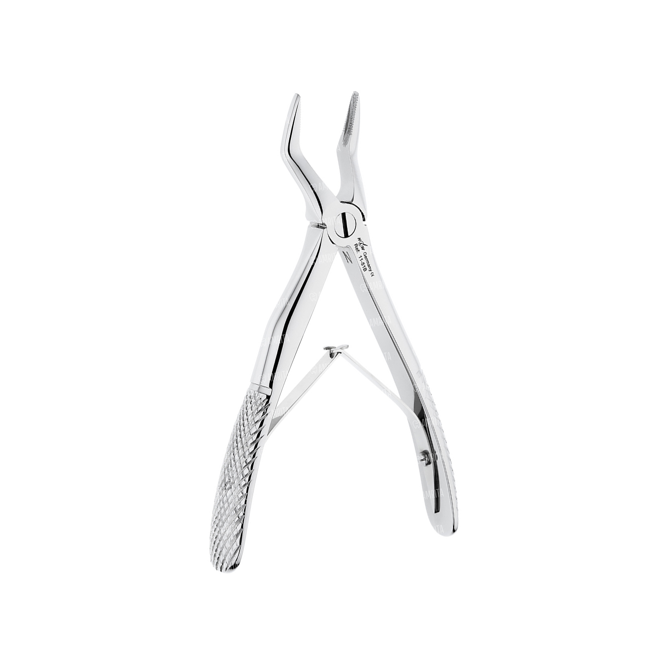 На внутренней поверхности меют слабовыраженную вогнутость. Так же до шарнирного соединения имеется укороченнаячасть браншей позволяющая удобно применять данные щипцы на боковых участках зубного ряда верхней челюсти у дечей со сменным прикусом. Наружняя поверхность ручек имеет эргономически удобные анатомичные изгибы для фаланг пальцев, на внутренней стороне каждой закреплена пружина раскрывающая бранши инструмента.