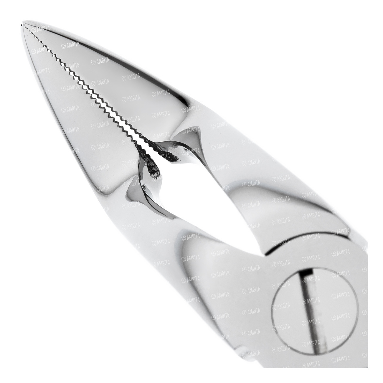 Внутренняя поверхность рабочей части имеет поперечно-продольные насечки. Наружная поверхность ручек покрыта ретенционным узором предотвращающим скольжение фаланг пальцев в латексной перчатке. Отполированы до зеркального блеска. В основании шарнирного соединения имеется тефлоновая вставка обеспечивающая плавный ход инструмента.