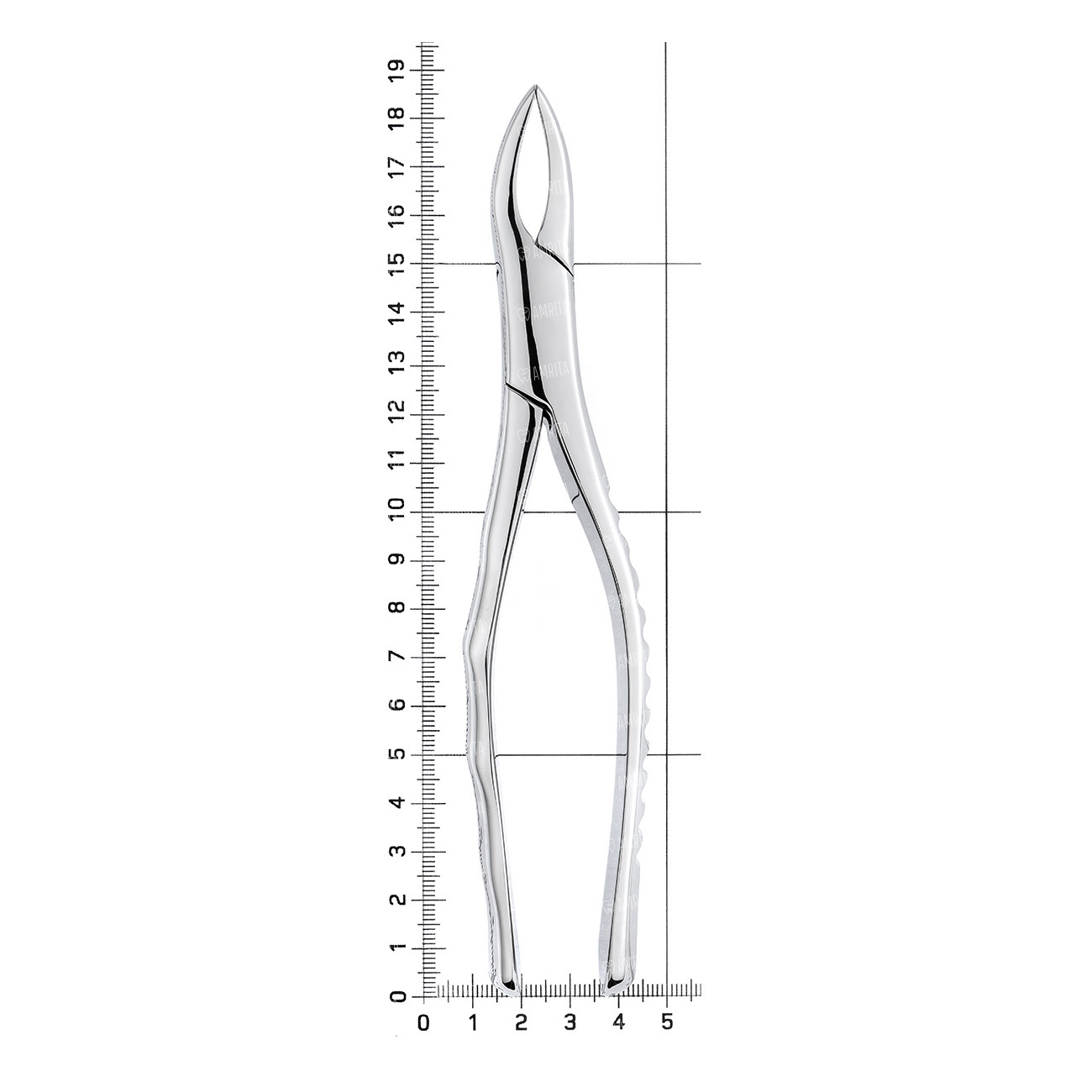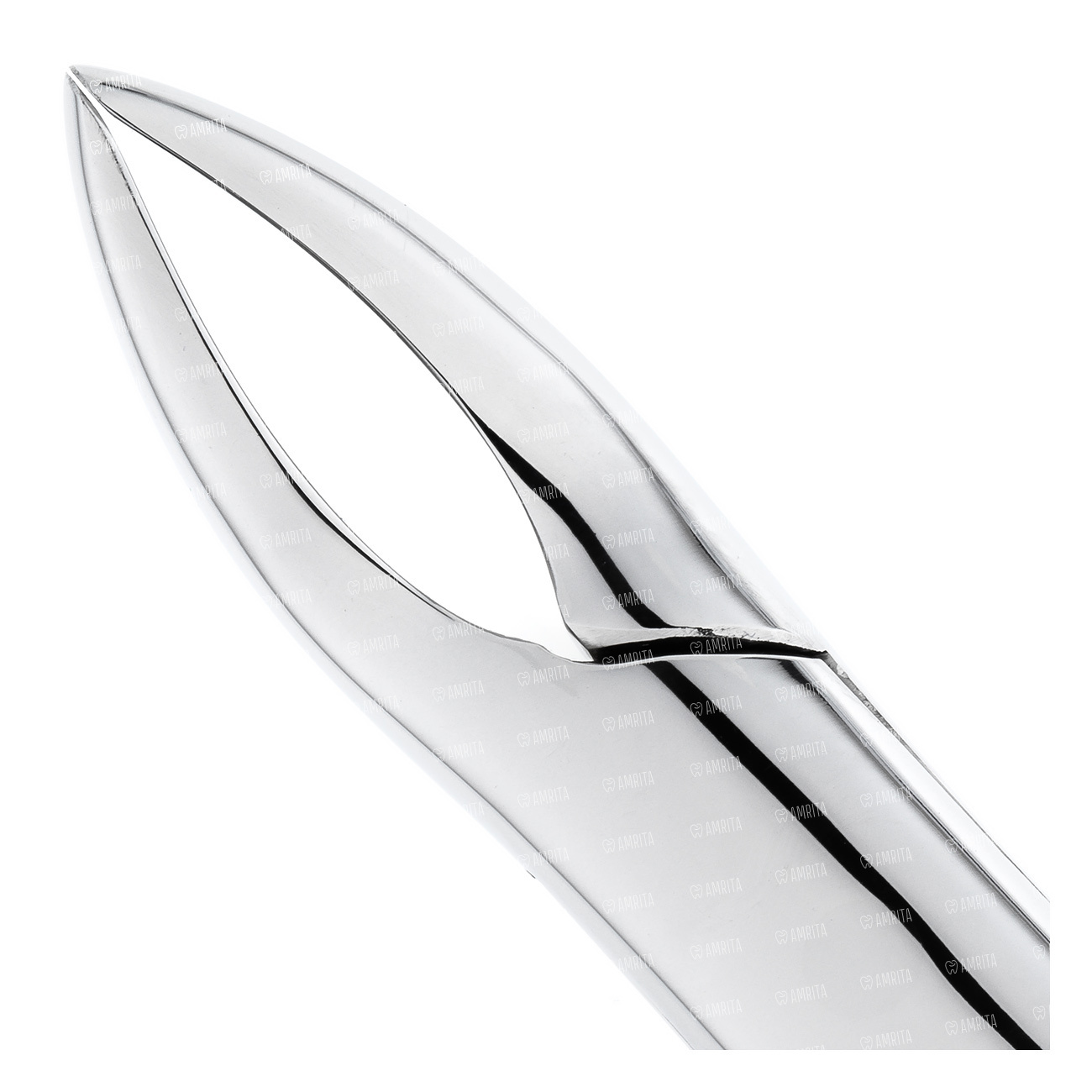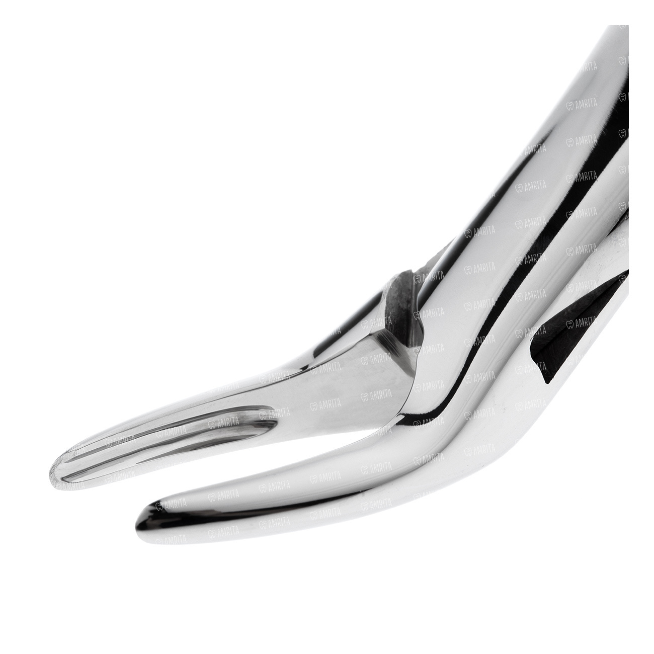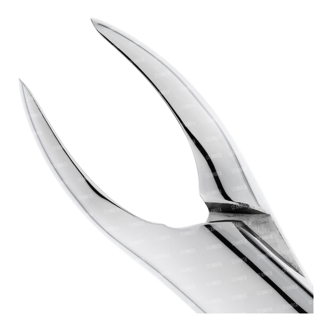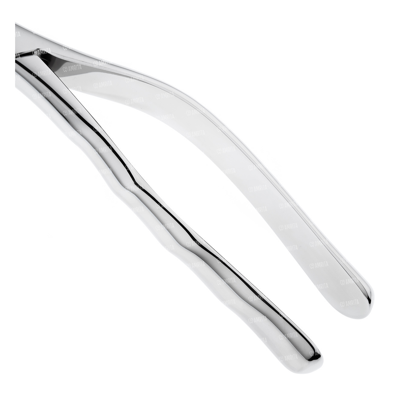 Рабочие части щипцов сходящиеся, гладкие с желобком. Такое устройство щечек обеспечивает удобный захват зуба и облегчает его удаление.