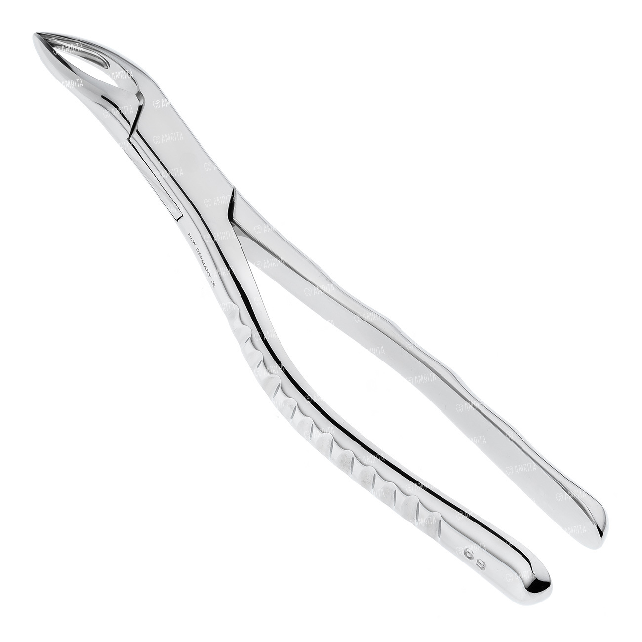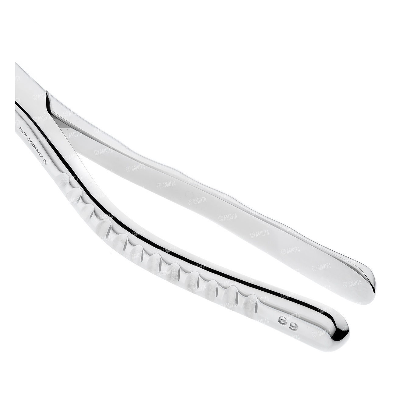 Щипцы корневые HLW (Германия) применяются при удалении фрагментов корней и зубов на верхней и нижней челюсти. У данной модели щипцов изогнутые ручки, что улучшает доступ к операционному полю при удалении верхних и нижних фрагментов зубов.