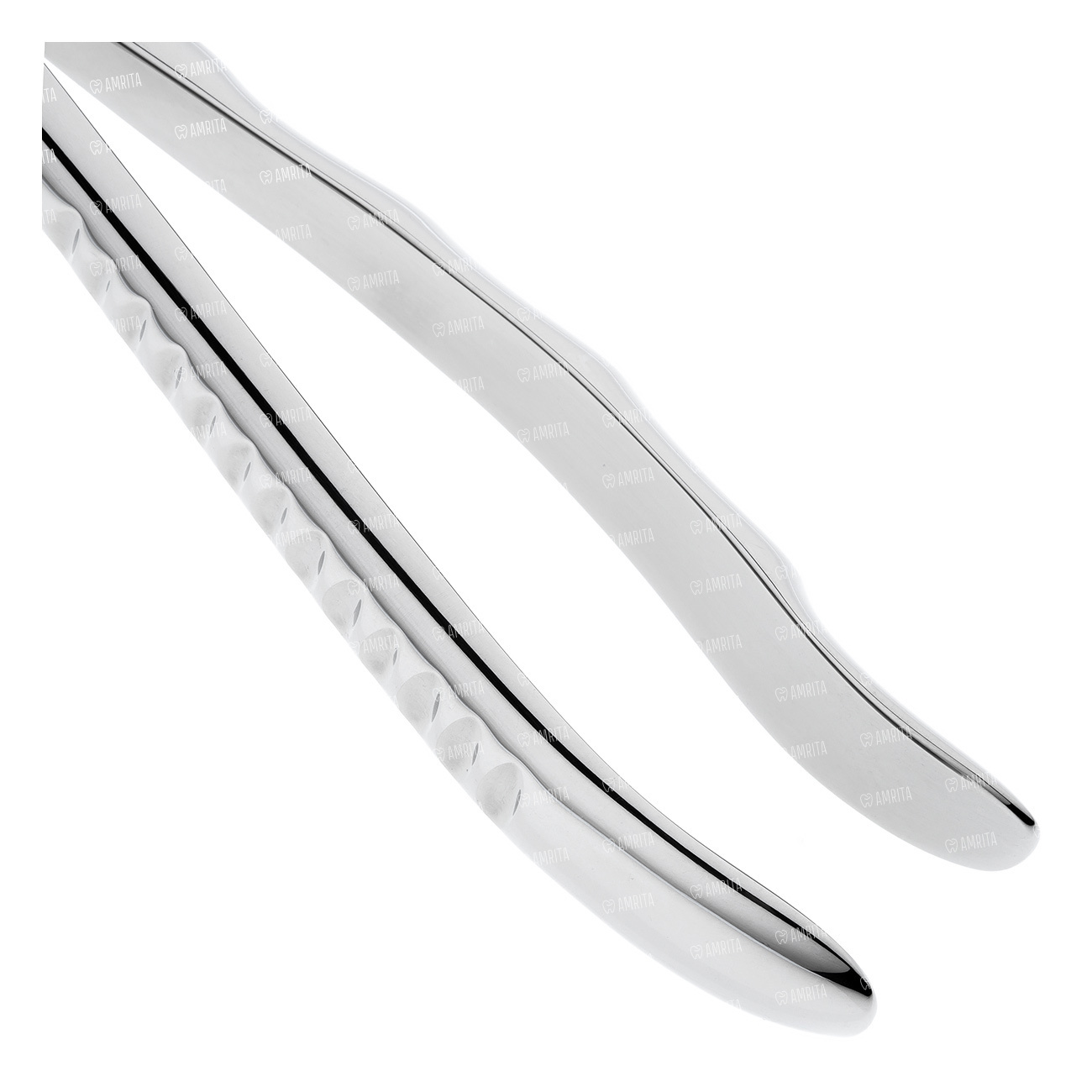 Внутренняя поверхность рабочей части имеет поперечно-продольные насечки. Поверхность одной из ручек имеет эргономически удобные анатомичные изгибы для фаланг пальцев, вторая ручка гладкая. Отполированы до зеркального блеска. В основании шарнирного соединения имеется тефлоновая вставка обеспечивающая плавный ход инструмента.