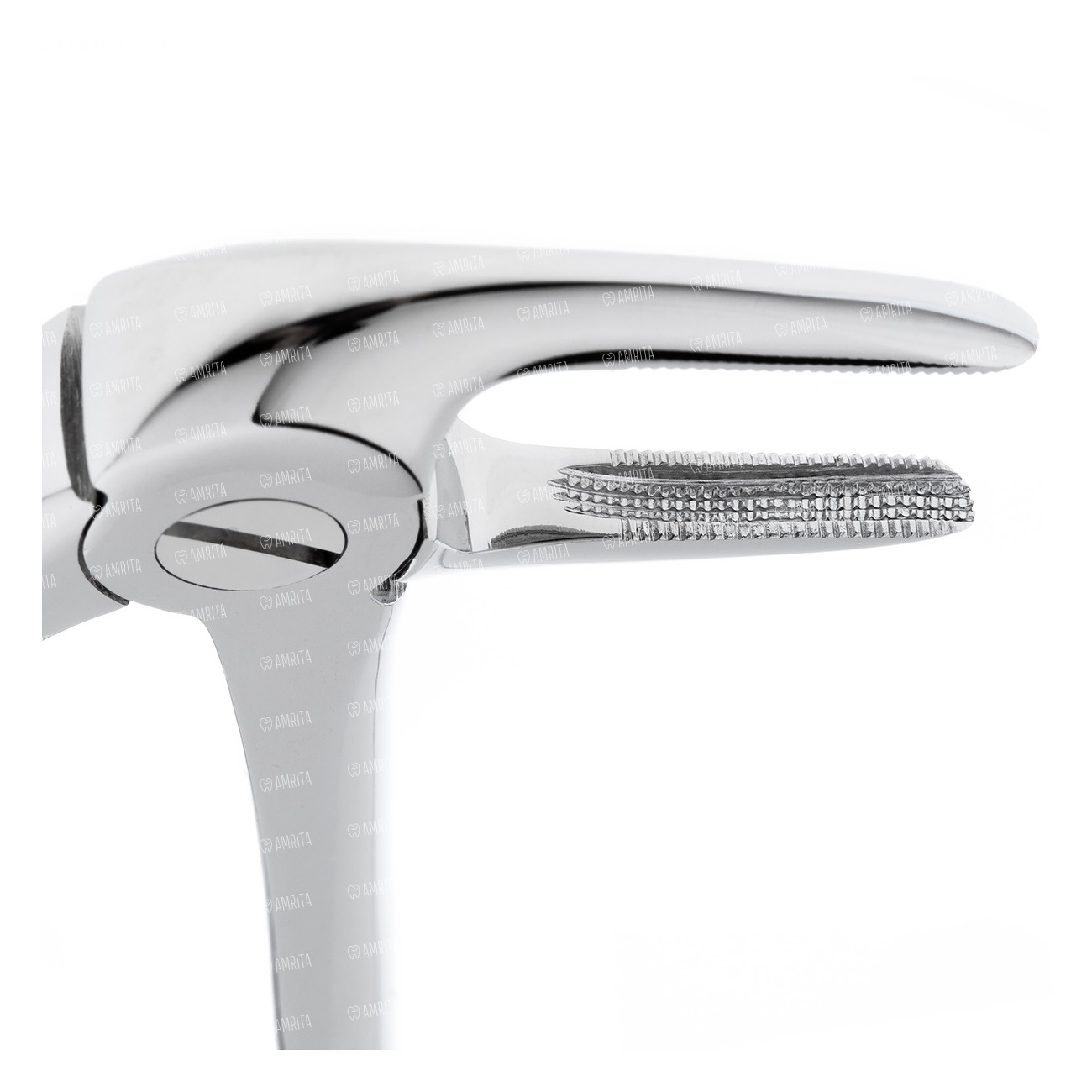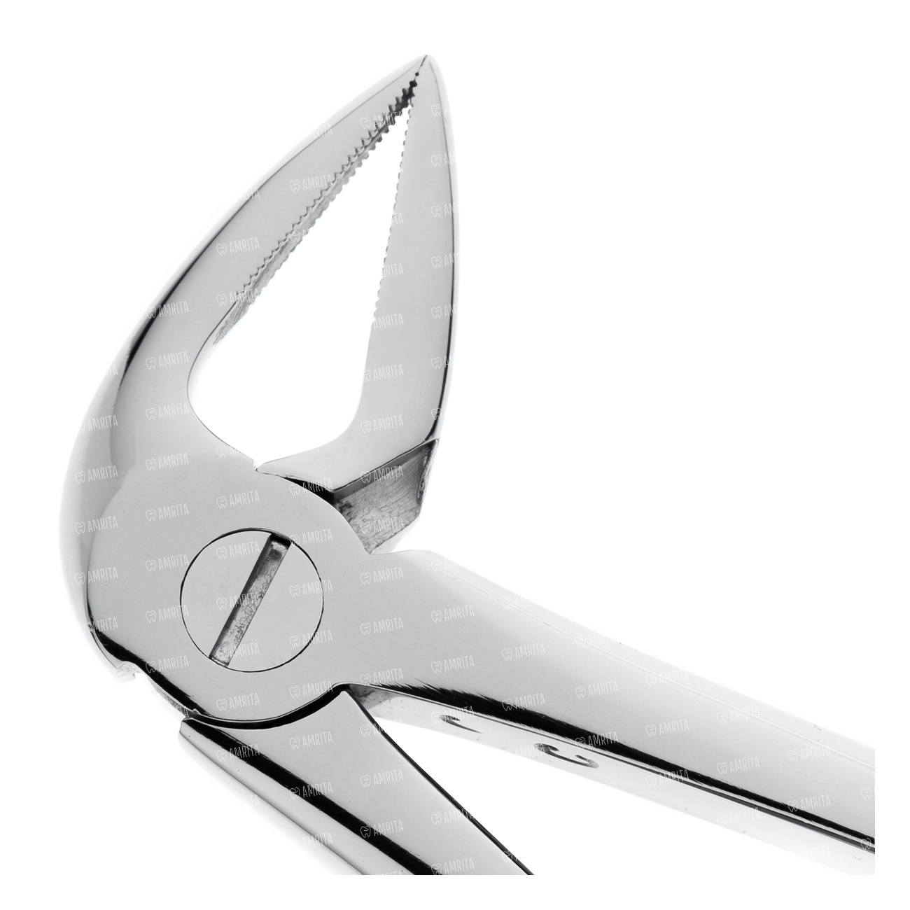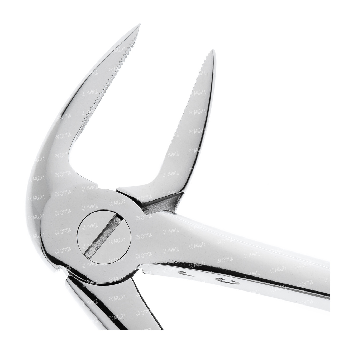 Щечки клювовидных щипцов ориентированы по отношению к ручкам под углом 900, при этом изгиб наносится по ребру. Конструкция инструмента дает возможность ввести его глубоко в полость рта и провести операцию по удалению корней на нижней челюсти.