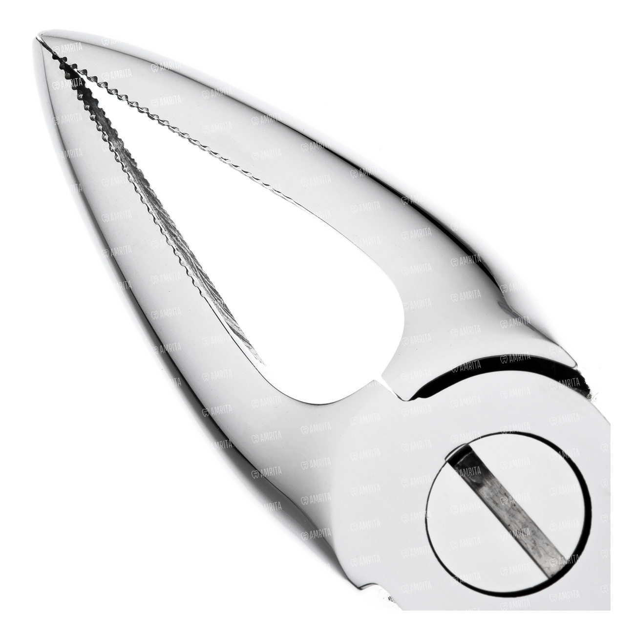 Внутренняя поверхность рабочей части имеет поперечно-продольные насечки. Наружная поверхность ручек покрыта ретенционным узором предотвращающим скольжение фаланг пальцев в латексной перчатке. Отполированы до зеркального блеска. В основании шарнирного соединения имеется тефлоновая вставка обеспечивающая плавный ход инструмента.