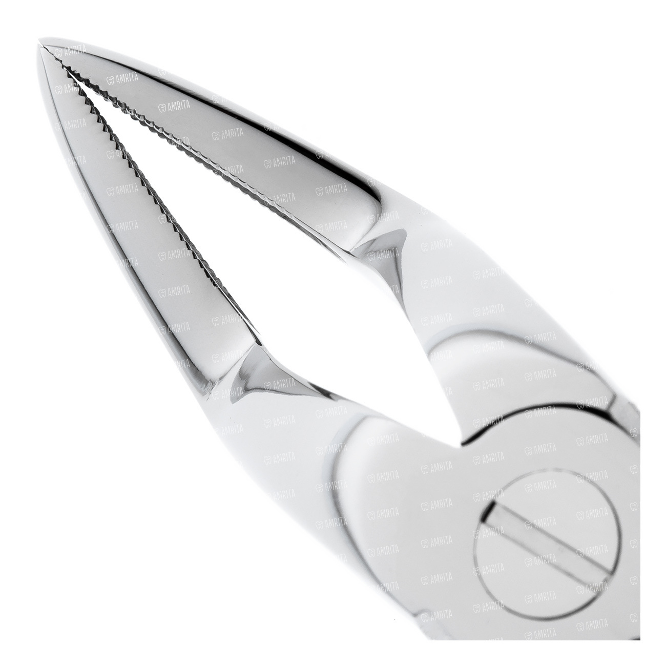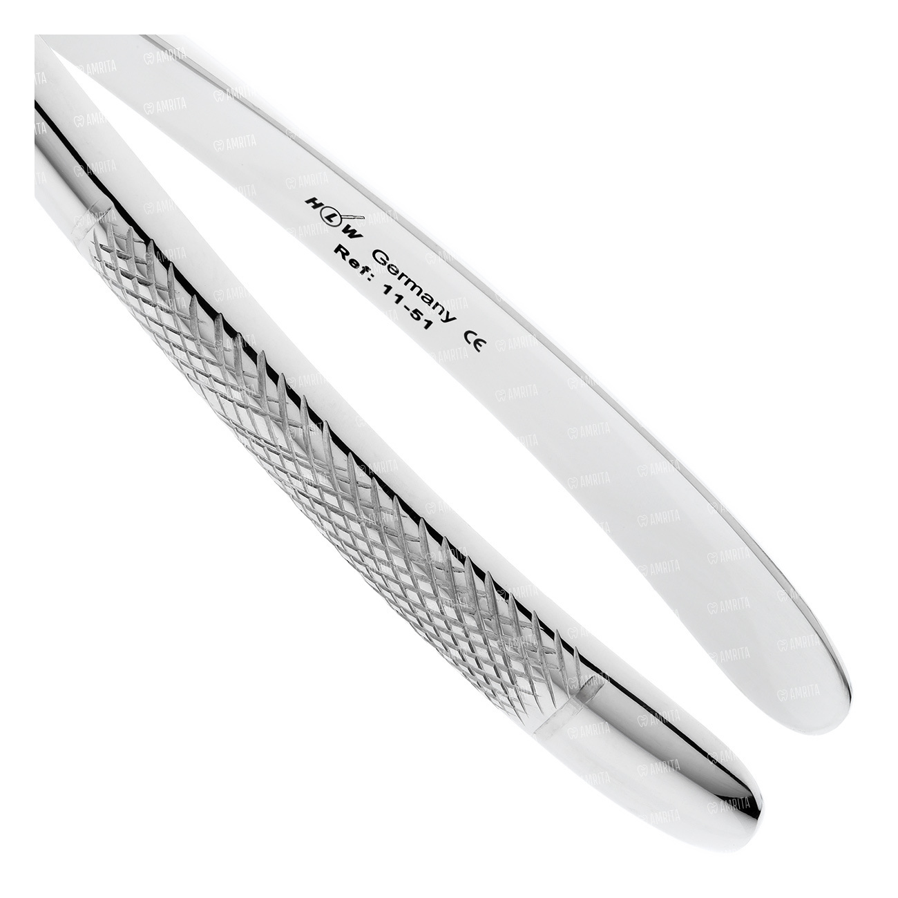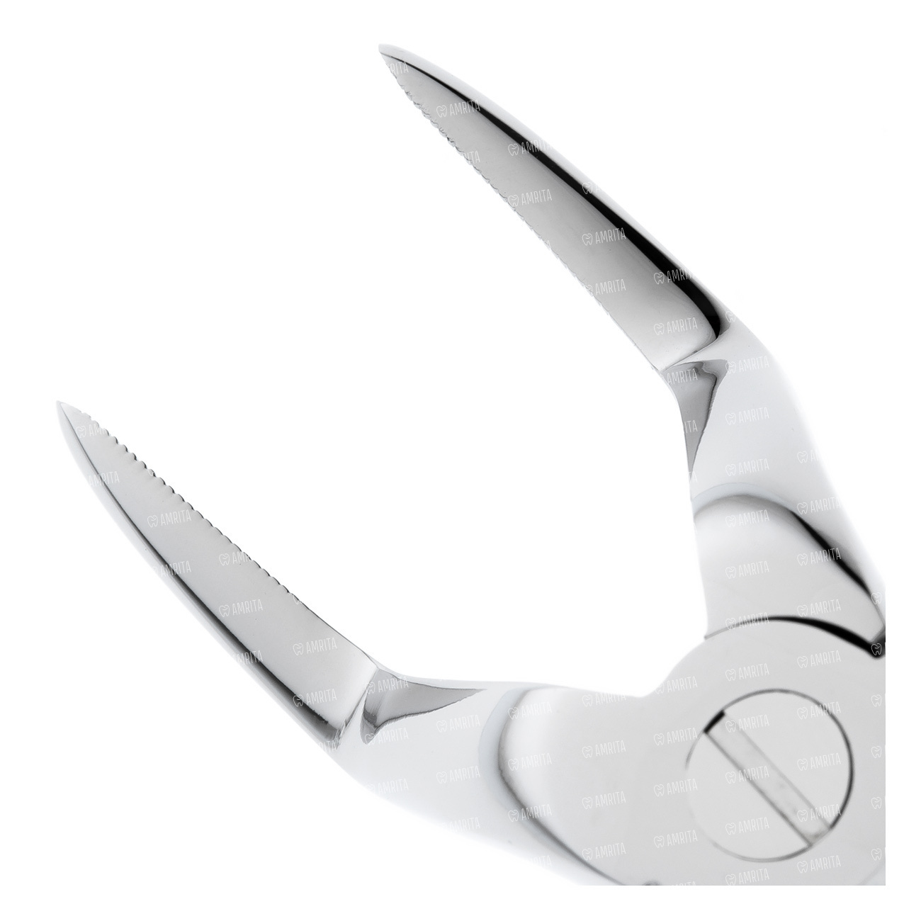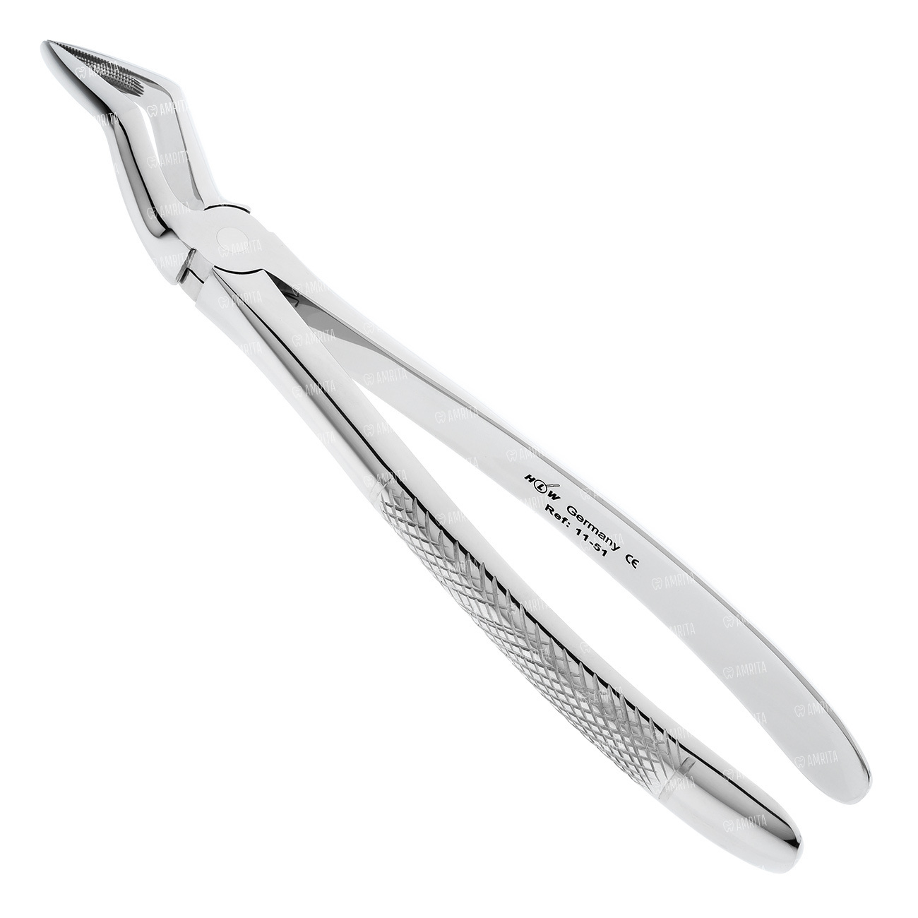 Щипцы для удаления корней на верхней челюсти. Форма №51. Бранши сходящиеся на конце. Рабочая часть имеет штыковидный (байонетный) изгиб.