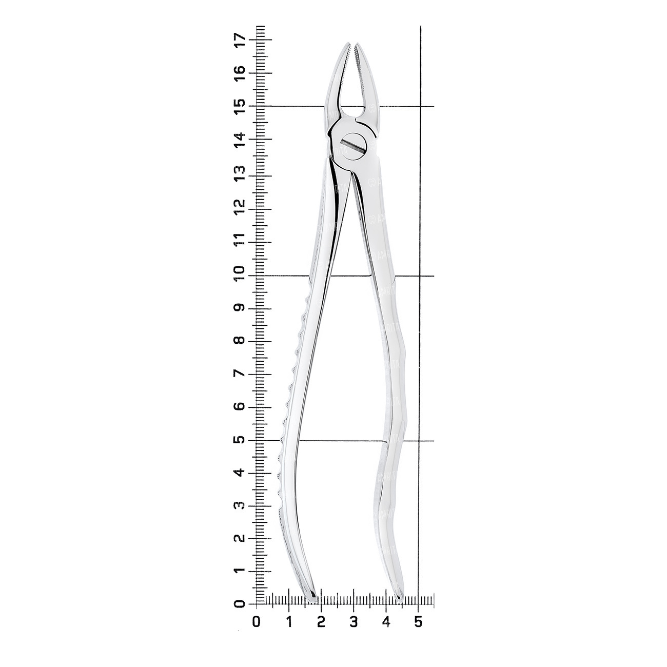 Щипцы прямые для удаления резцов и клыков на верхней челюсти с крупным размером коронковой части. Форма №1. Бранши прямые, не сходящиеся.
