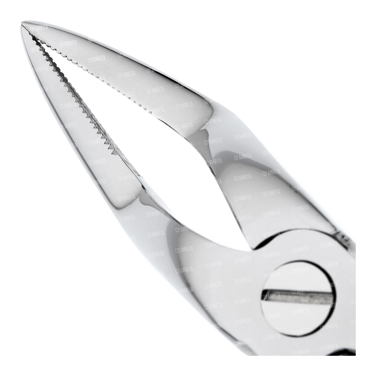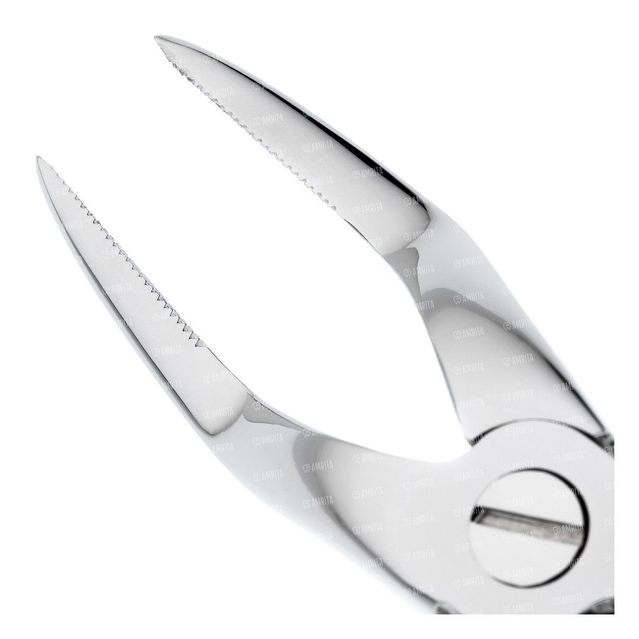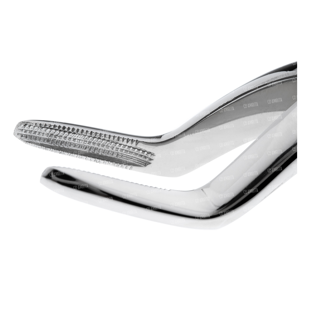 Наружная поверхность ручек покрыта ретенционным узором предотвращающим скольжение фаланг пальцев в латексной перчатке. Отполированы до зеркального блеска. В основании шарнирного соединения имеется тефлоновая вставка обеспечивающая плавный ход инструмента.