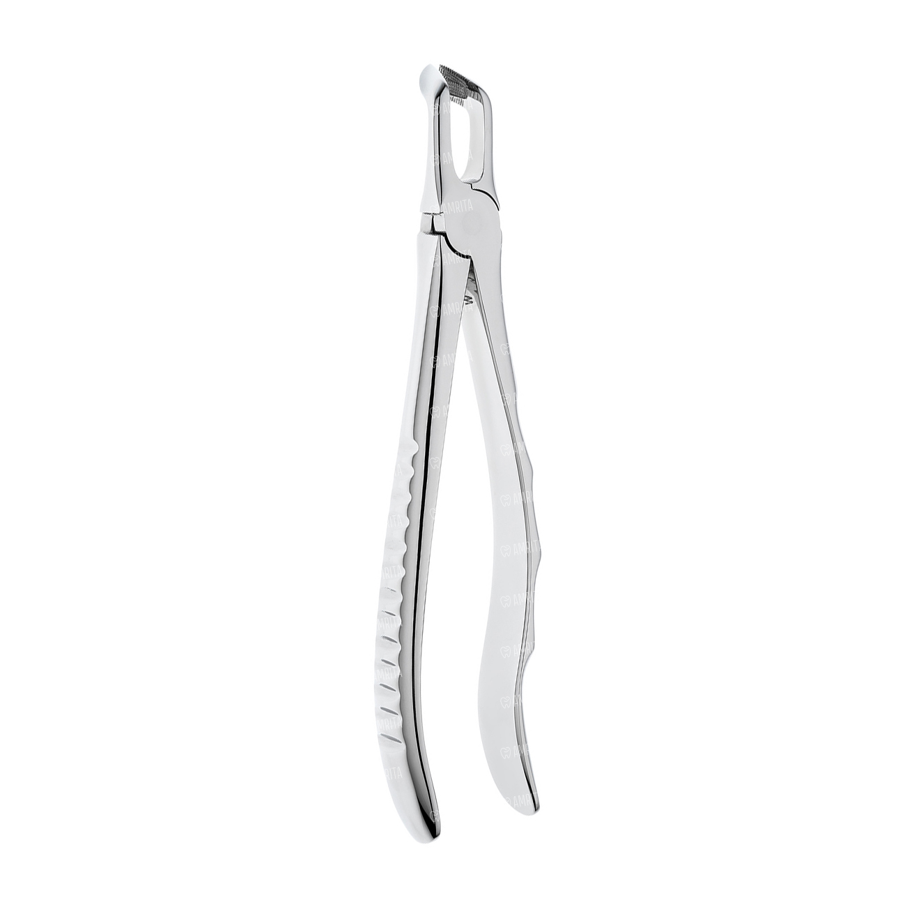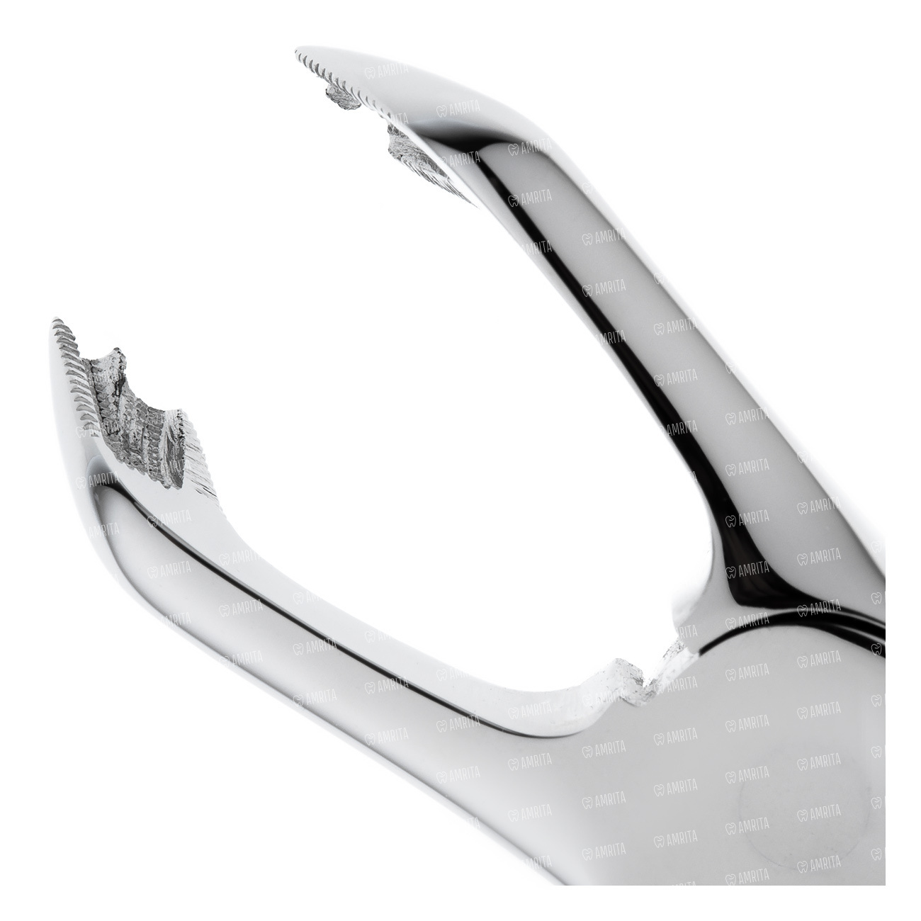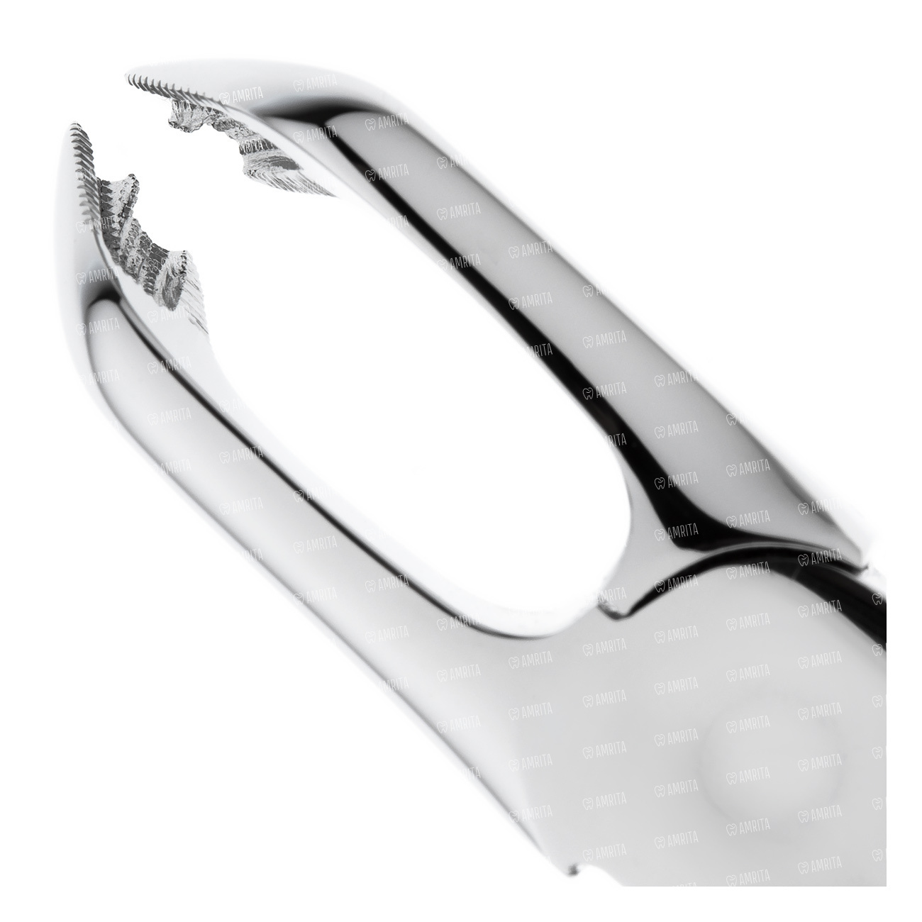 Щипцы имеют изгиб по плоскости под тупым углом к продольной оси инструмента, благодаря чему есть возможность ввести щипцы глубоко в полость рта.