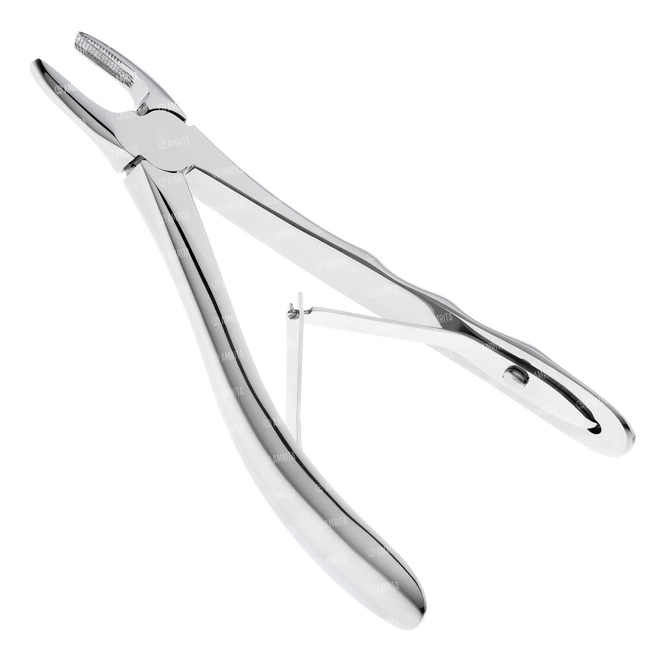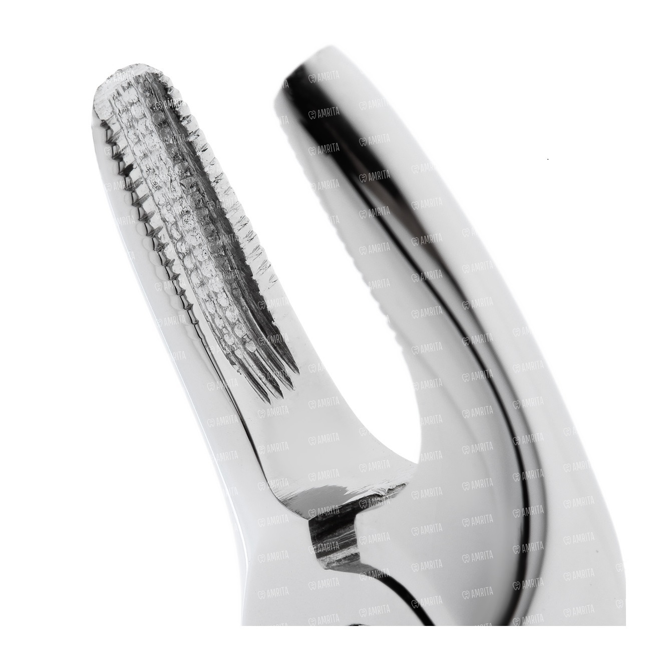 Данные щипцы удобно применять на боковых участках зубного ряда верхней челюсти у детей со сменным прикусом, так как часть браншей до шарнирного соединения укорочена.