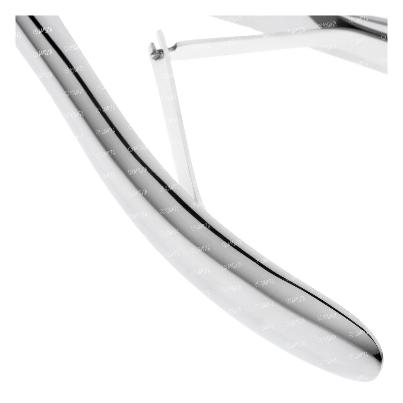 Наружная поверхность ручек имеет эргономически удобные анатомические изгибы для фаланг пальцев. Бранши инструмента дополняются пружинными фиксаторами, обеспечивающими плавный ход щипцов. Благодаря небольшому размеру инструмент легко скрыть от маленьких пациентов в ладони.