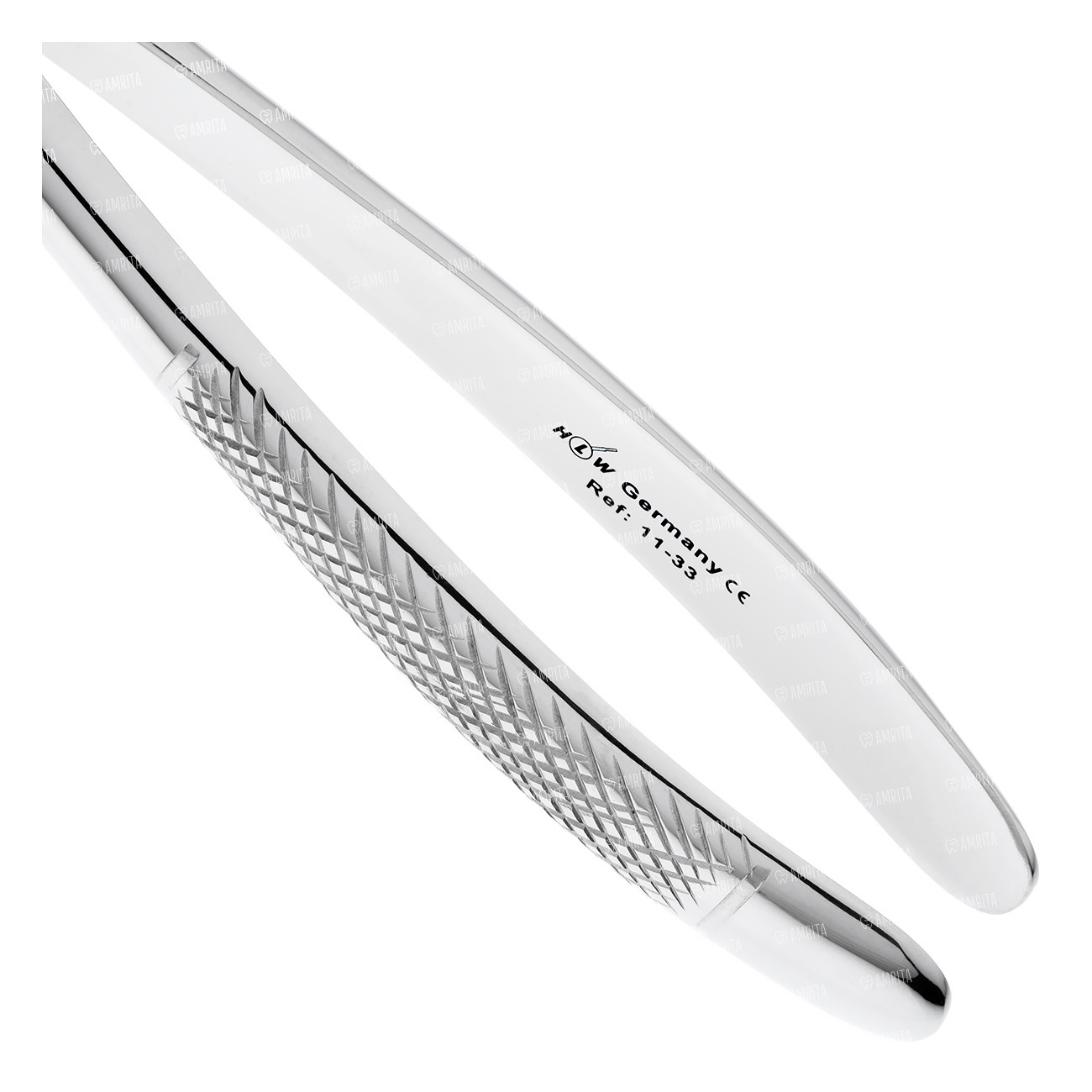Щипцы для удаления корней на нижней челюсти клювовидные. Форма №33. Щипцы имеют изгиб по ребру. Бранши сходящиеся, расположены под тупым углом относительно продольной оси инструмента.