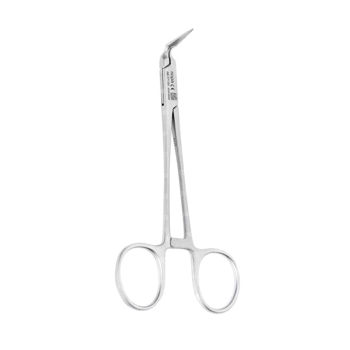 Изогнутые щипцы немецкой торговой марки Nopa Instruments предназначены для извлечения костных обломков. Инструмент оснащен кремальерой, расположенной вблизи колец, которая обеспечивает удержание инструмента в замкнутом положении, а также контролирует силу сдавливания. Ручки извлекающих щипцов имеют стандартные кольцевые хваты для указательного и большого пальцев.