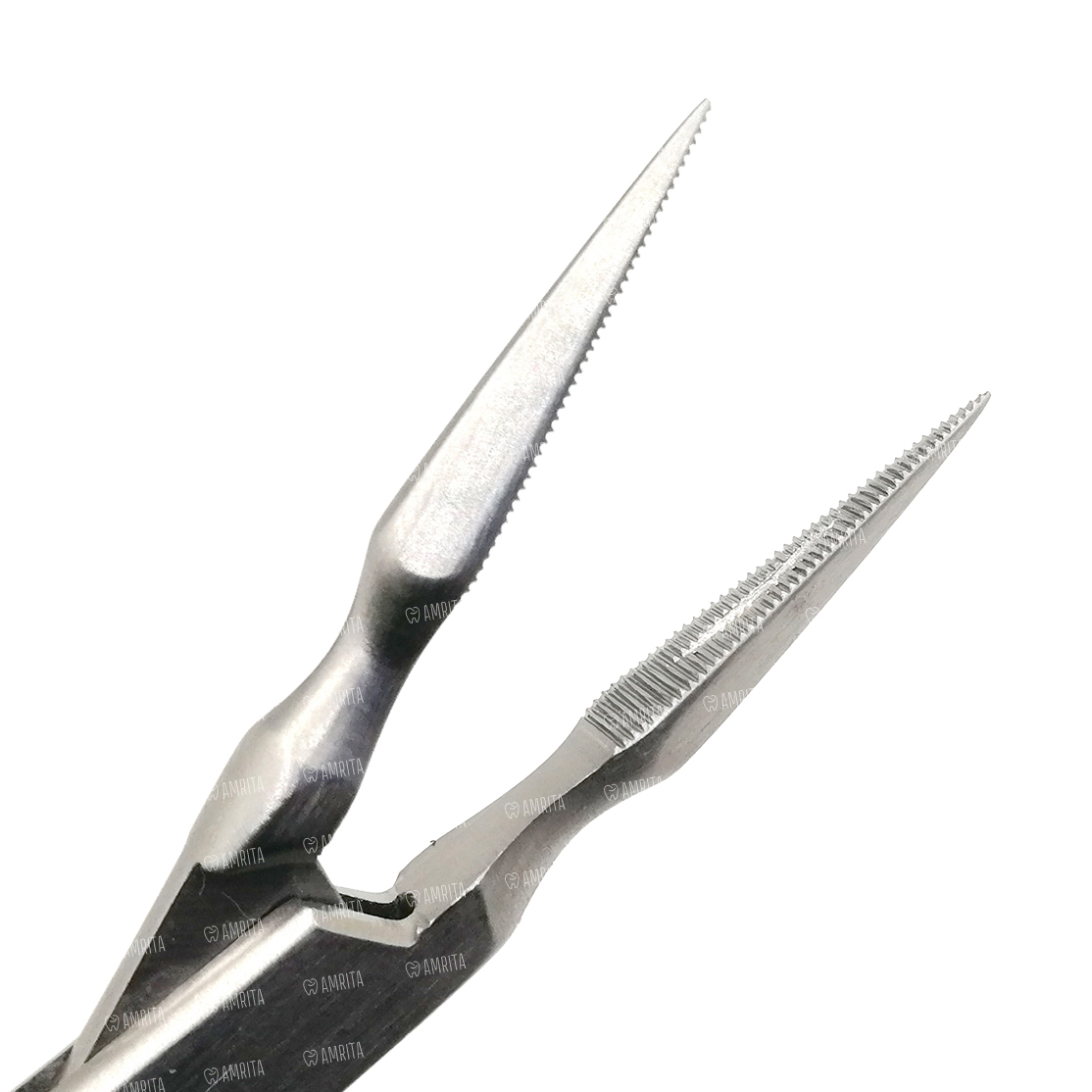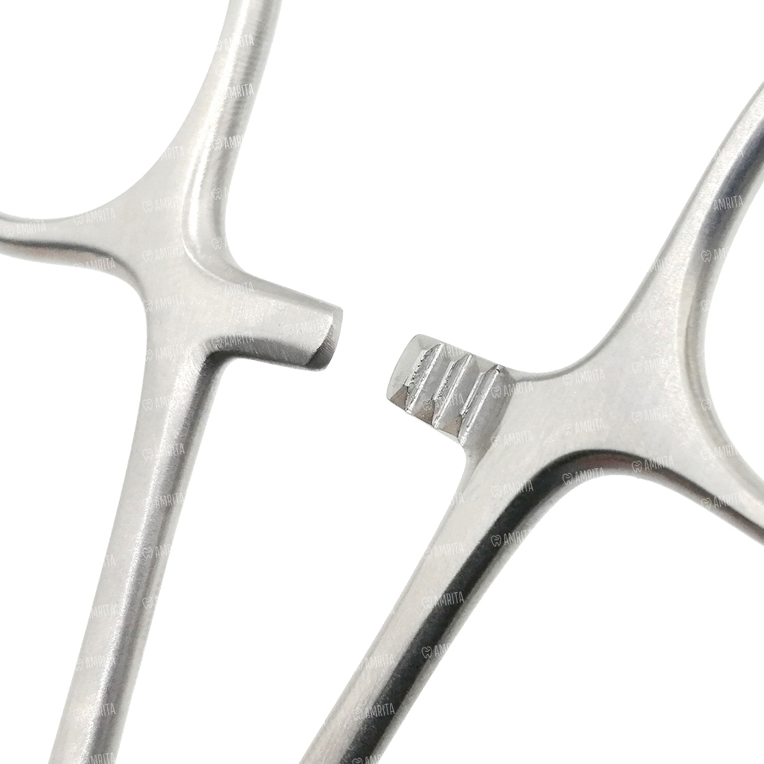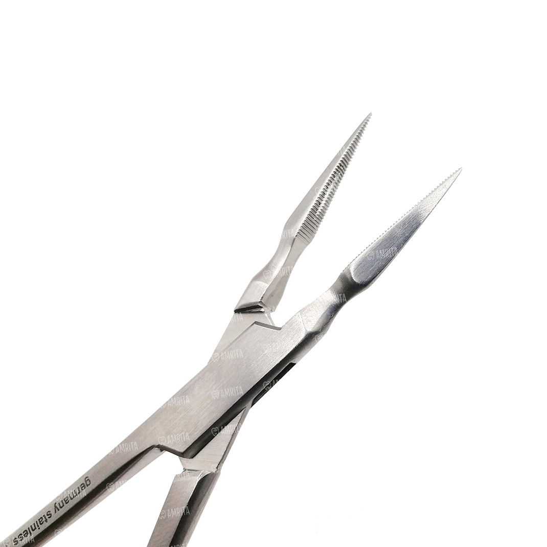 Прямые тонкие рабочие части легко захватывают коронки и их части. Шарнир обеспечивает легкую работу врача. Ограничители на ручках не дают сильно сжать рабочие части.