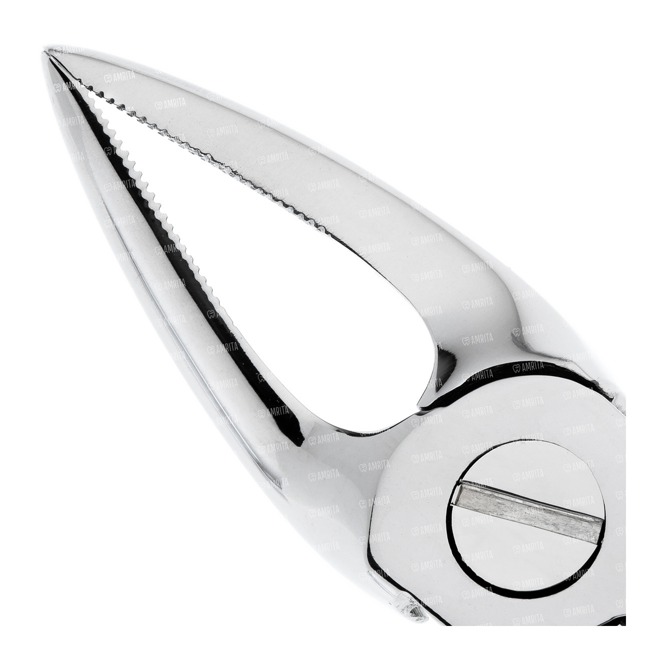 Внутренняя поверхность рабочей части имеет поперечно-продольные насечки. Наружная поверхность ручек покрыта ретенционным узором предотвращающим скольжение фаланг пальцев в латексной перчатке. Отполированы до зеркального блеска. В основании шарнирного соединения имеется тефлоновая вставка обеспечивающая плавный ход инструмента.