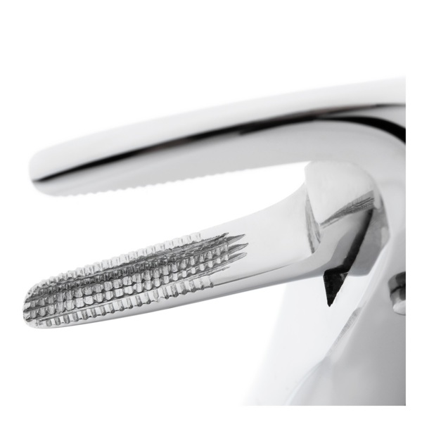 Внутренняя поверхность рабочей части имеет поперечно-продольные насечки. Наружная поверхность ручек покрыта ретенционным узором предотвращающим скольжение фаланг пальцев в латексной перчатке. Одна из половин инструмента имеет продольную прорезь в области шарнира и пропускает через себя вторую половину щипцов. Отполированы до зеркального блеска.