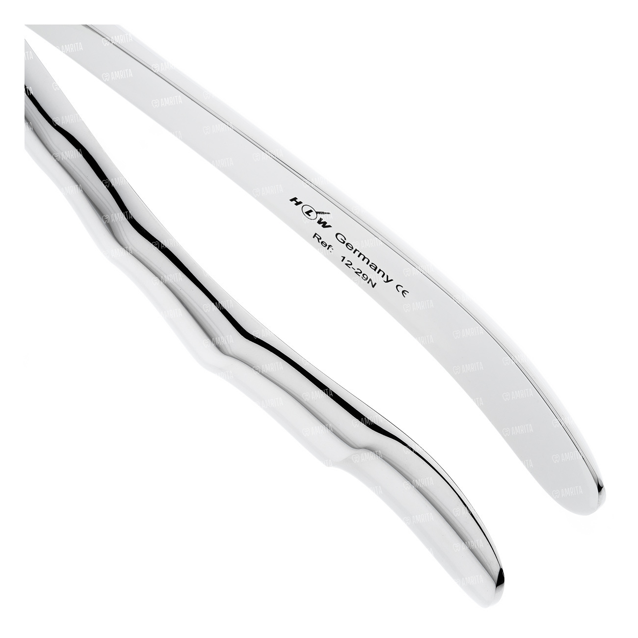 Щипцы корневые HLW (Германия) используются для удаления корней на верхней челюсти. Узкая рабочая часть с продольно-поперечными насечками на внутренней поверхности обеспечивает доступ к корням зубов и хорошую фиксацию инструмента. Щечки щипцов сходятся.