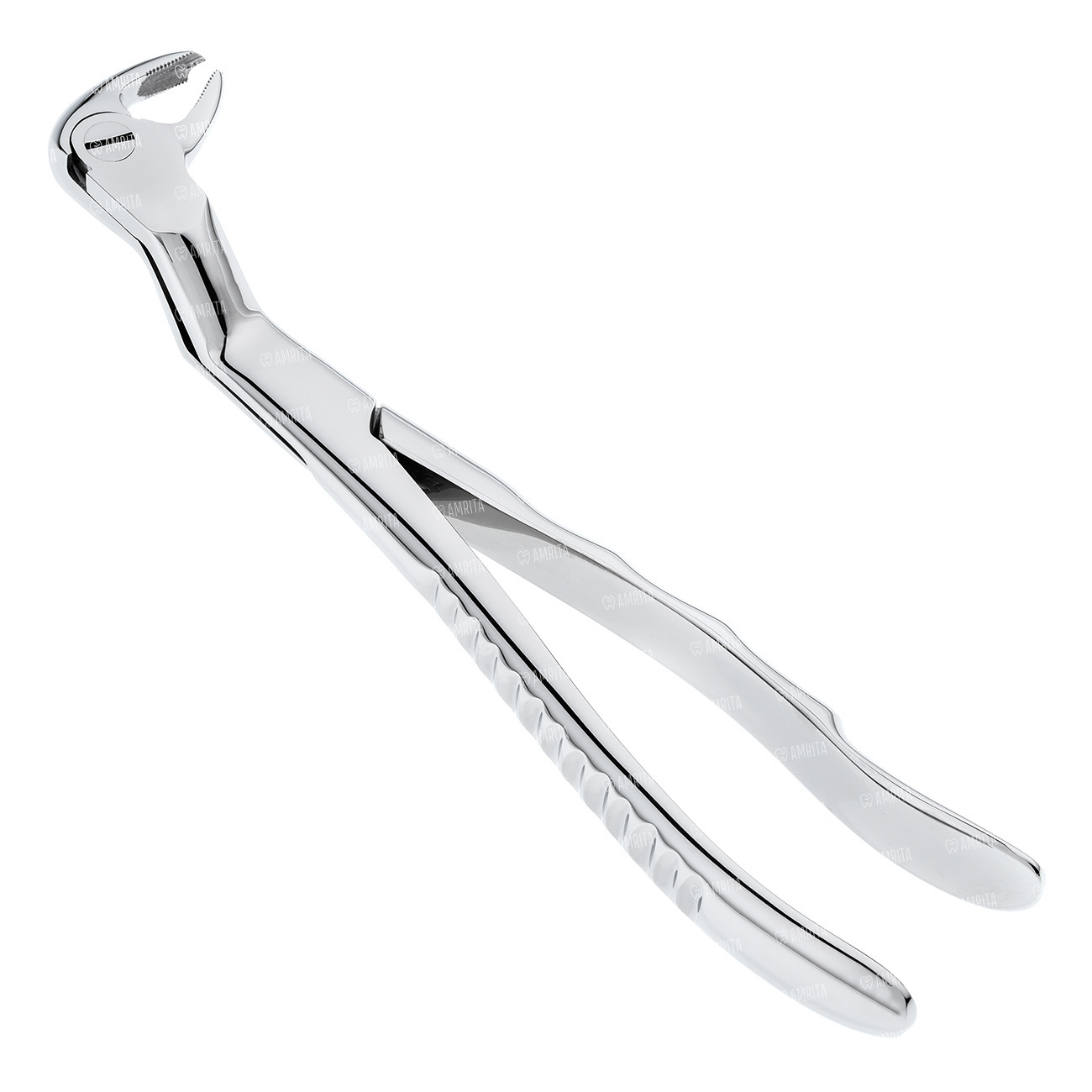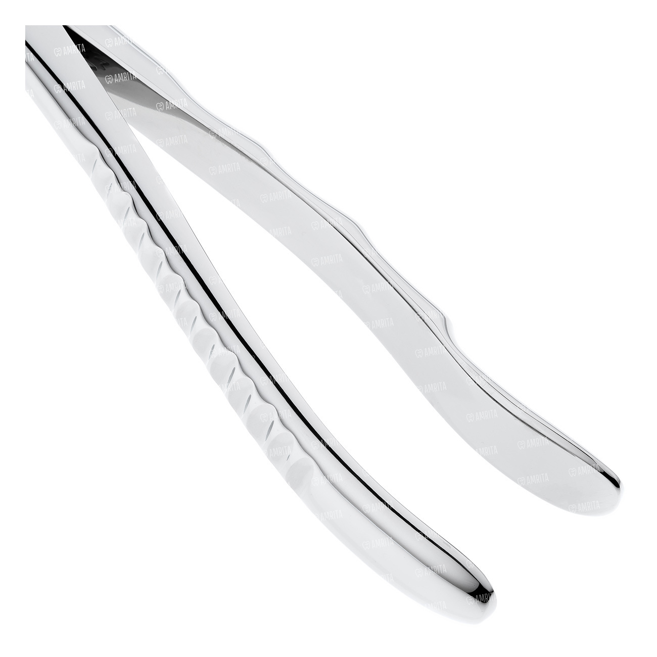 Ручки щипцов на поверхности имеют эргономически удобные анатомические изгибы для фаланг пальцев. Инструментом с такими браншами очень удобно проводить операции по удалению зубов мудрости на нижней челюсти.