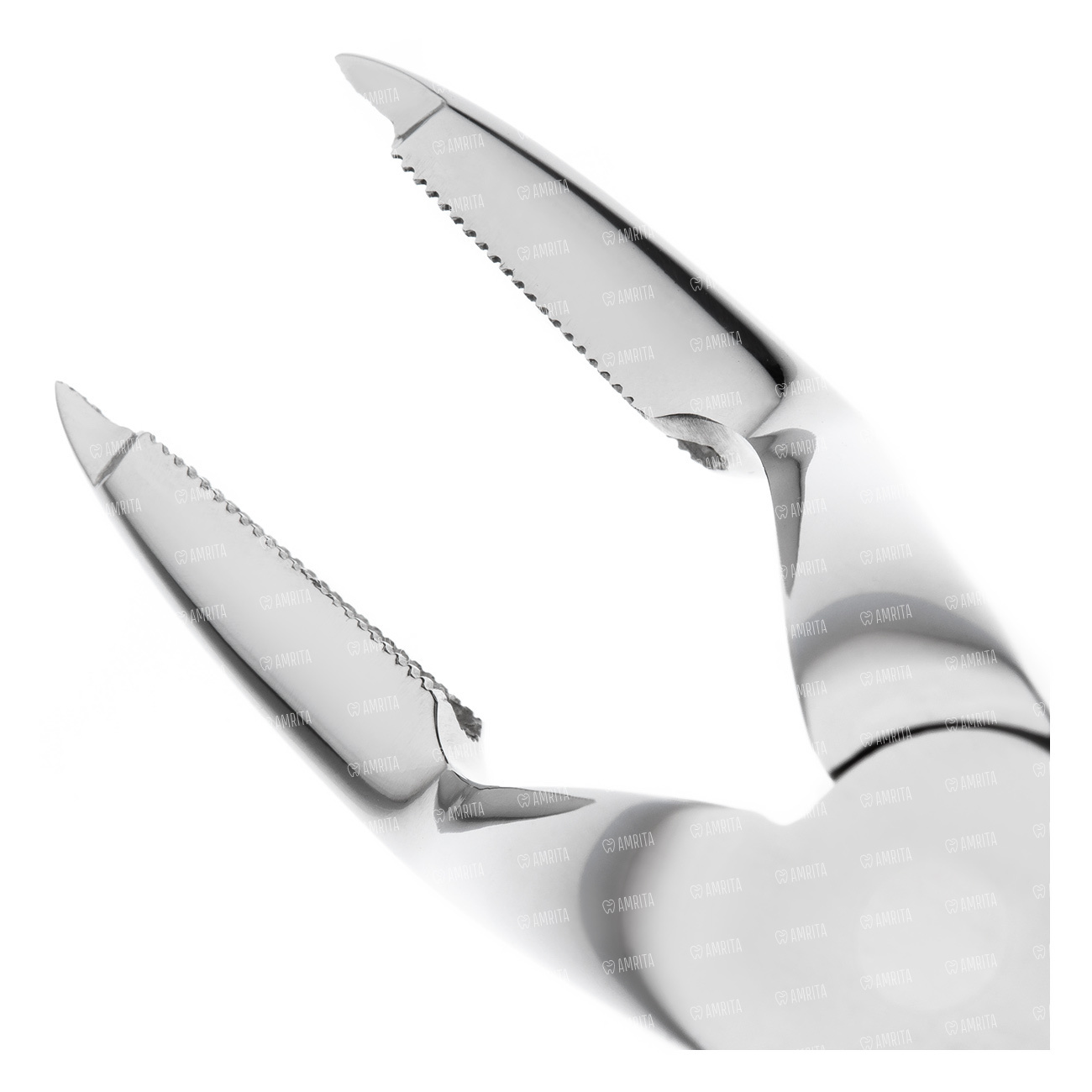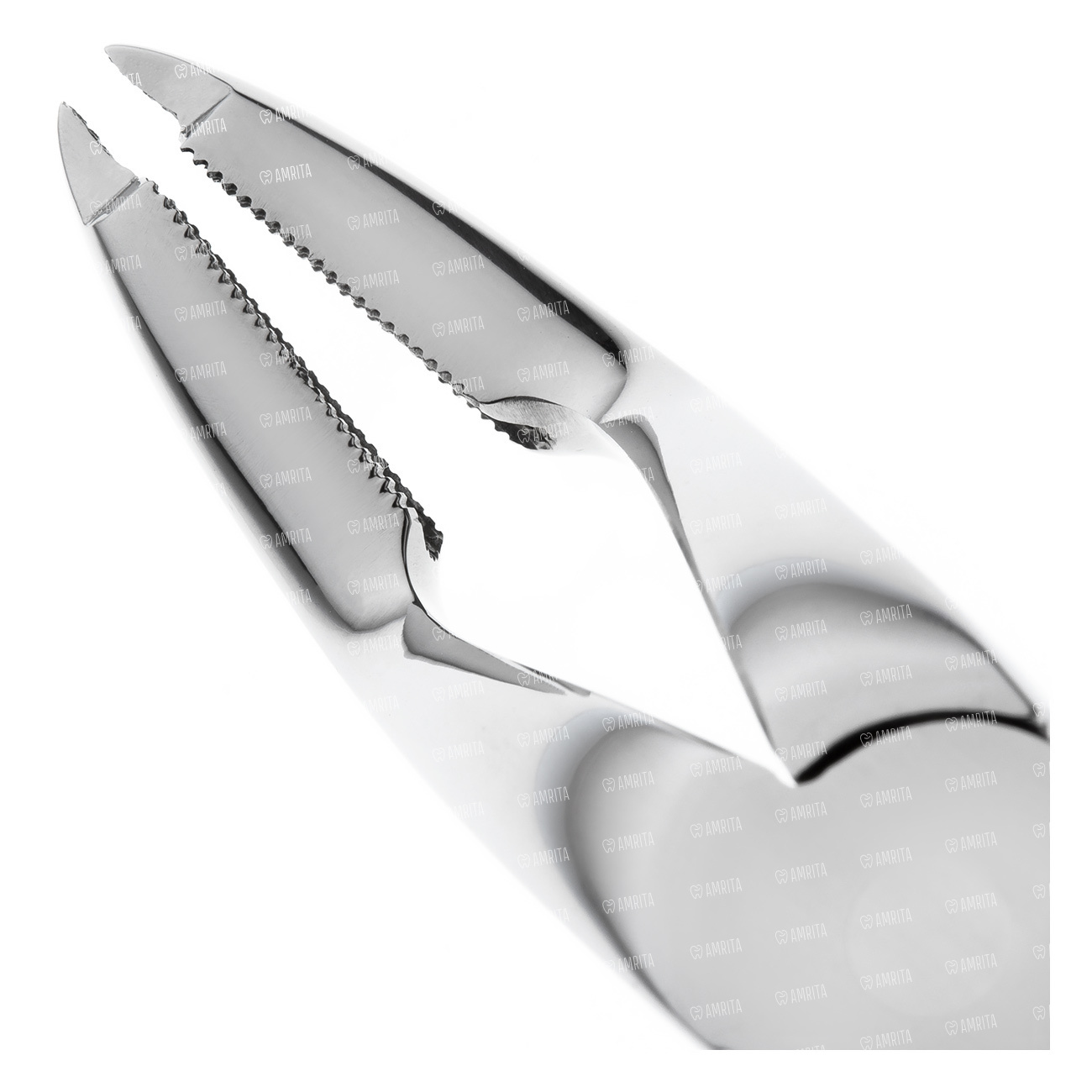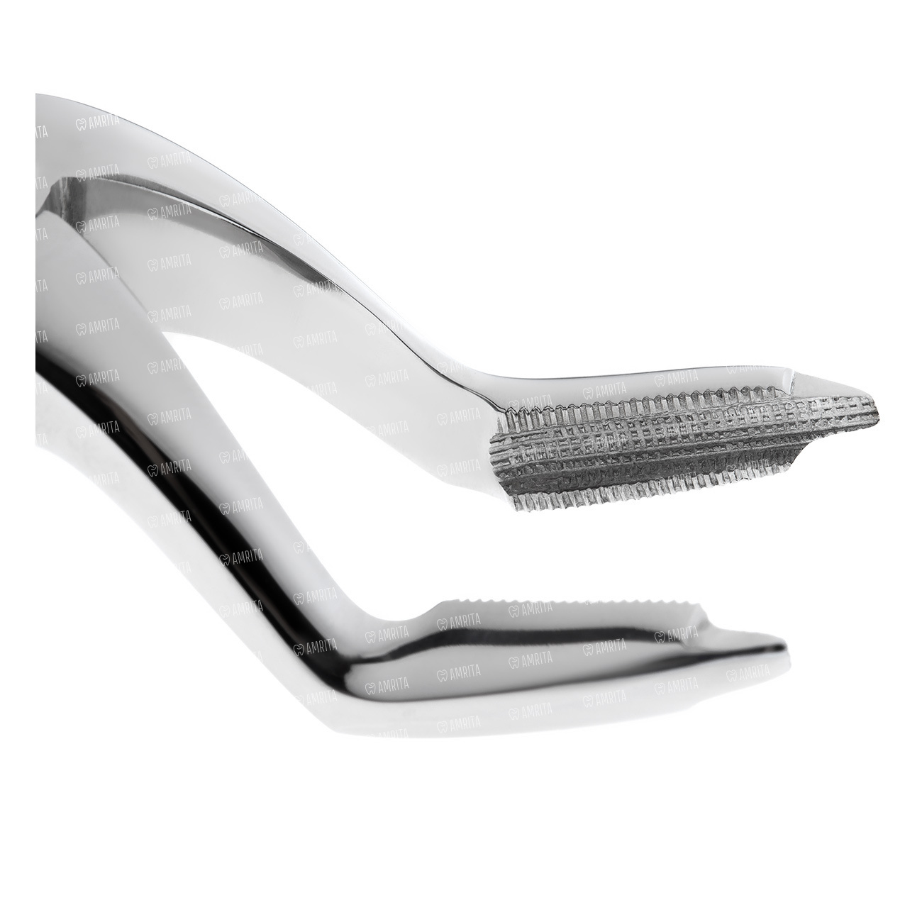 На внутренней поверхности браншей имеется вогнутость среднего размера радиуса, покрытая микроретенционной насечкой для предотвращения их проскальзывания по поверхности корня удаляемого зуба. На боковых поверхностях браншей в области их кончика имеются выемки для возможности более глубокого введения щипцов при их фиксации на корне зуба, и минимальном травмировании окружающих сосочков десны.