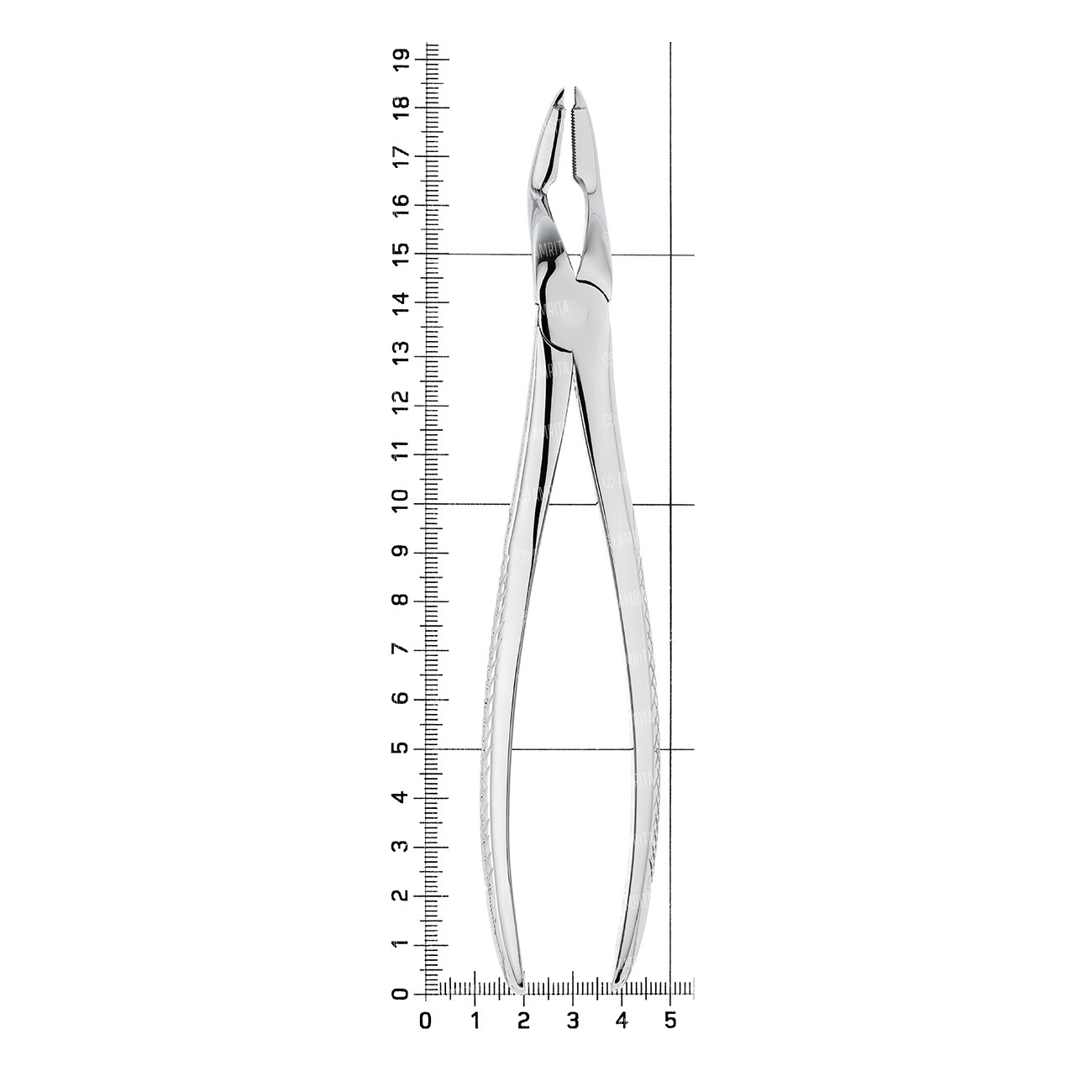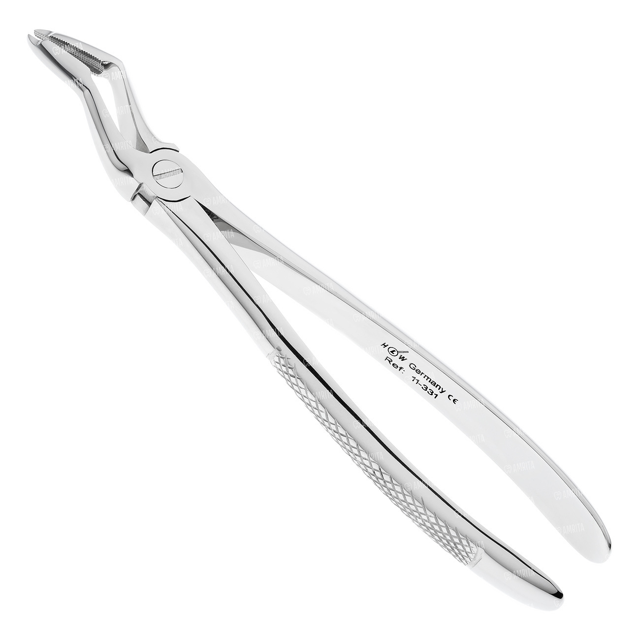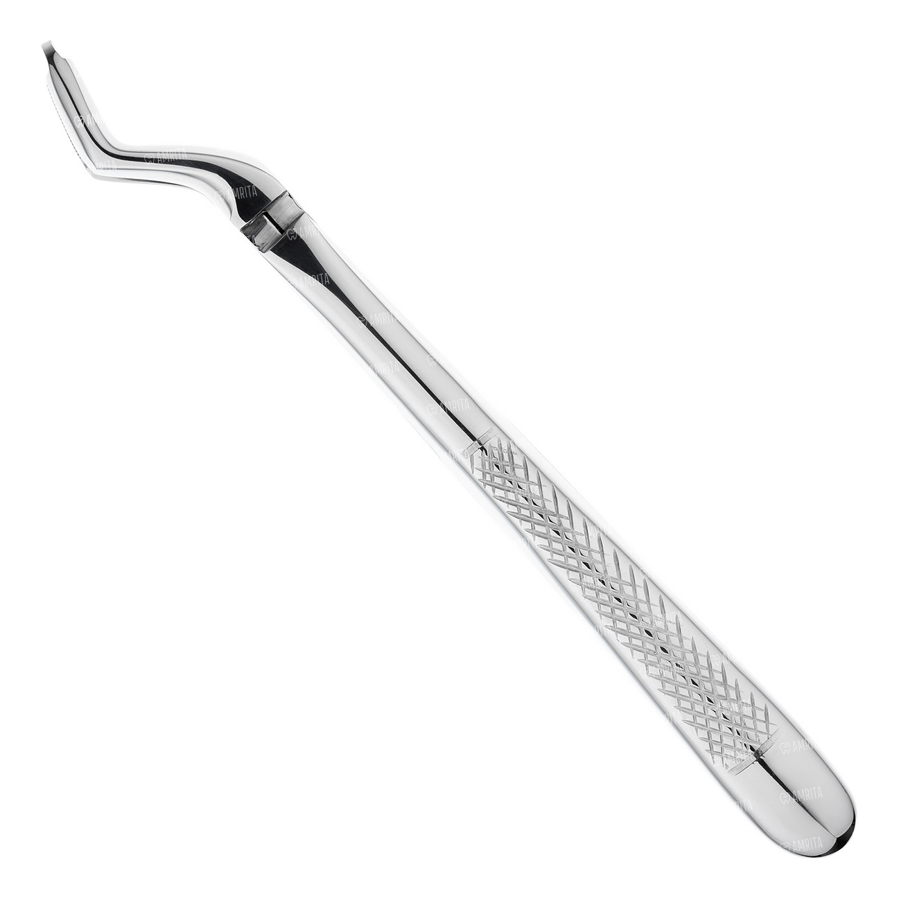 Щипцы для удаления глубокорасположенных корней зубов и их фрагментов на верхней челюсти. Форма №331. Щипцы имеют двойной байонетный изгиб по плоскости. Бранши сходящиеся.